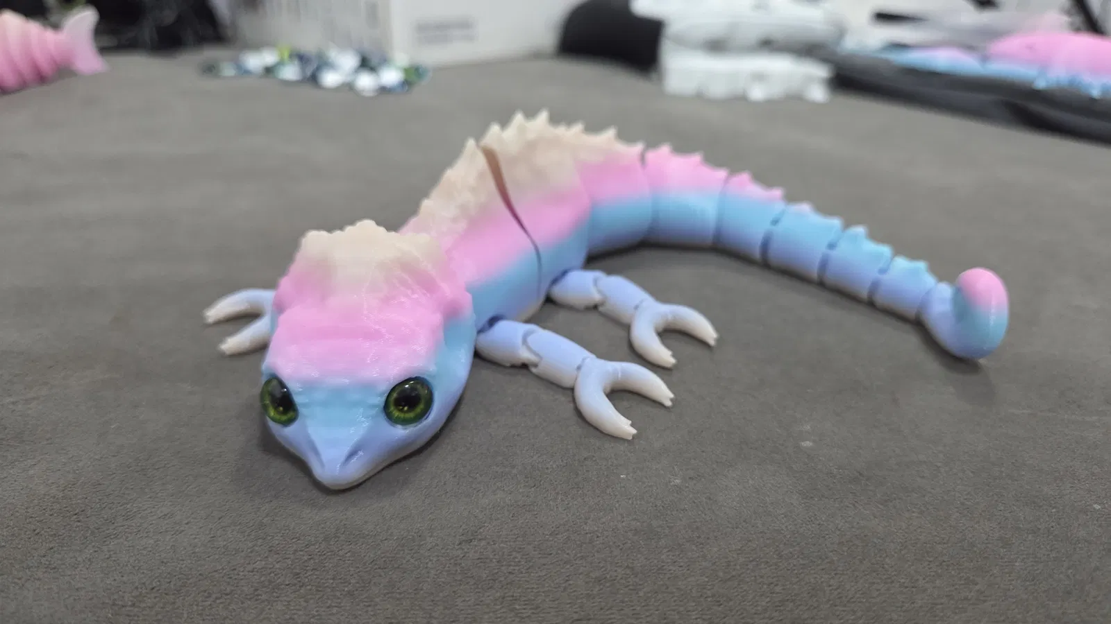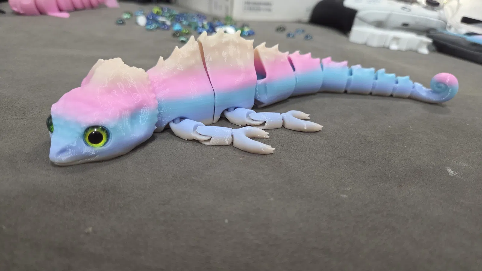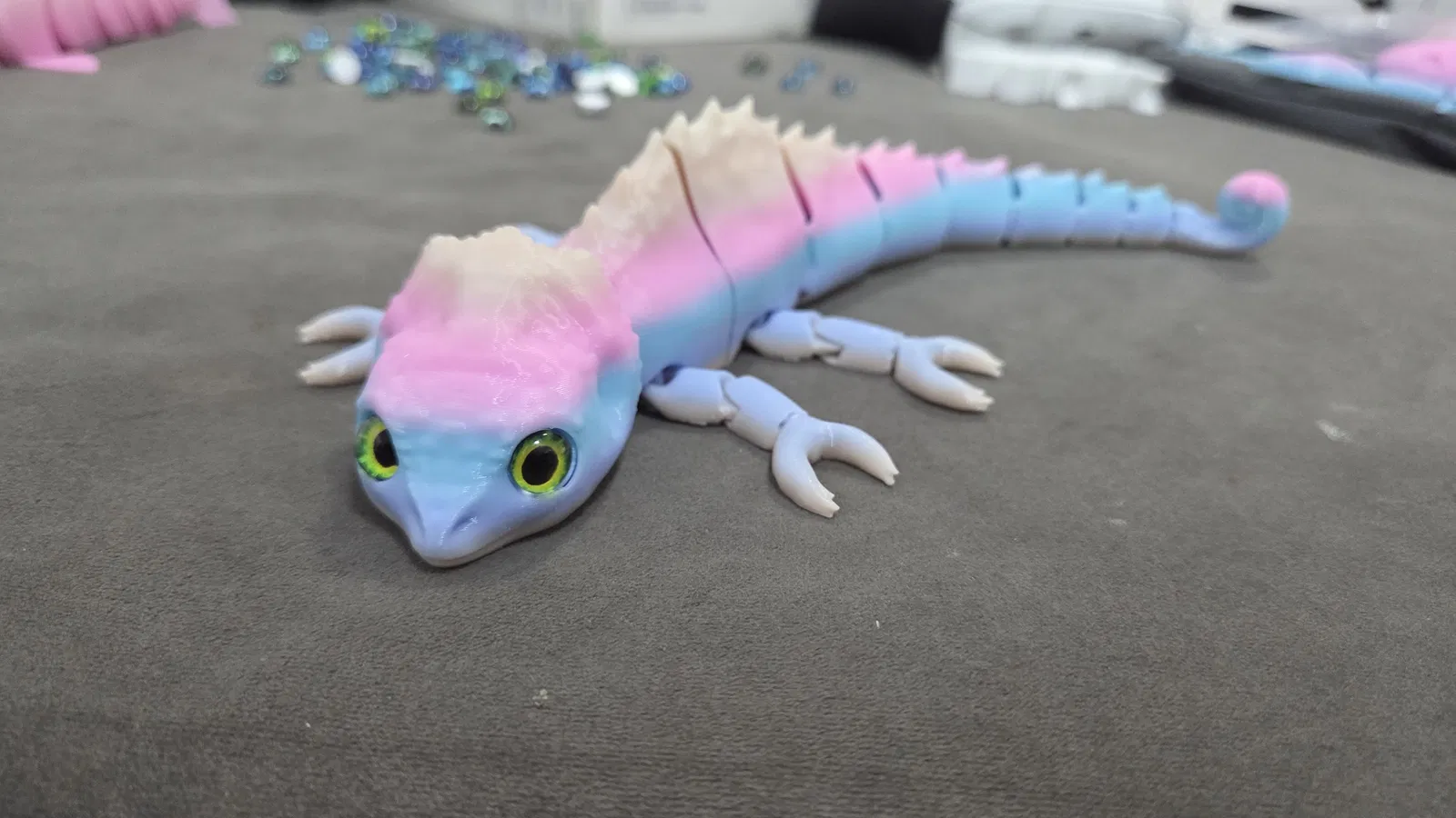 Mẫu tắc kè hoa articulated nay đã tương thích mắt kính 8mm. Có file 3mf; lỗ gắn mắt sẽ hiện sau khi slice. Không cần supports, không khuyến nghị brim. Lưu ý khớp chân chưa thật sự tốt nhưng trưng bàn rất đẹp.
