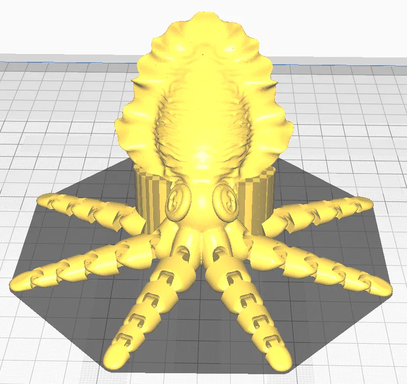 Articulated Cuttlefish – mẫu mực nang khớp nối dễ thương, in một lần là xong (one time print). Đã redesign và resize để an toàn hơn cho trẻ em. Khuyến nghị dùng supports như hình; có kèm file Ultimaker Cura project.