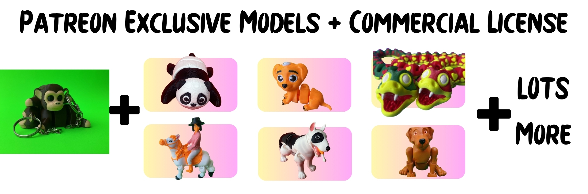 Nếu bạn muốn phiên bản móc khóa của chú khỉ, hoặc bất kỳ mẫu 3D nào bên trên, các mẫu mới/sắp ra mắt, hoặc cần giấy phép thương mại, vui lòng ghé Patreon của mình. Khi tham gia, bạn sẽ được phép bán các mẫu của mình, nhận thiết kế độc quyền và được quyền truy cập sớm vào các mẫu mới phát hành. Sự ủng hộ của bạn trên Patreon giúp mình tiếp tục tạo ra những mẫu thật xịn!