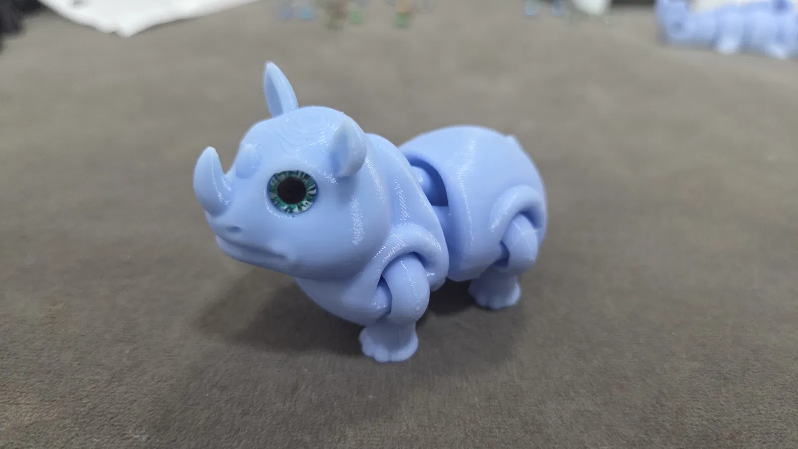 Mẫu tê giác khớp nối đáng yêu của Biocraftlab, nay tương thích gắn mắt kính 6mm. Có file 3MF; sau khi slice sẽ thấy lỗ mắt trong print preview. In dễ, không cần supports hay brim.