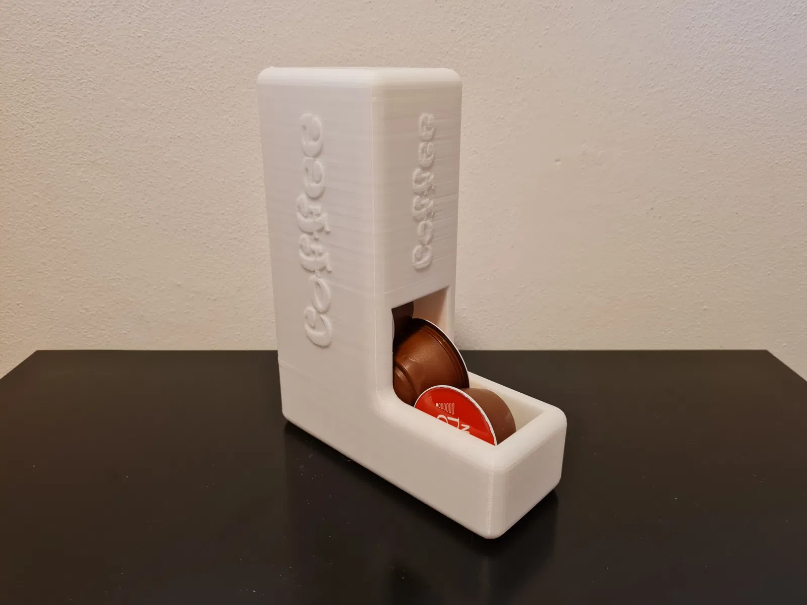 Người giữ vỏ cà phê cho vỏ nescafe. Các phép đo là 65 x 158 x 198, tôi in nó với lớp 0,3 mm, hoàn toàn màu trắng.