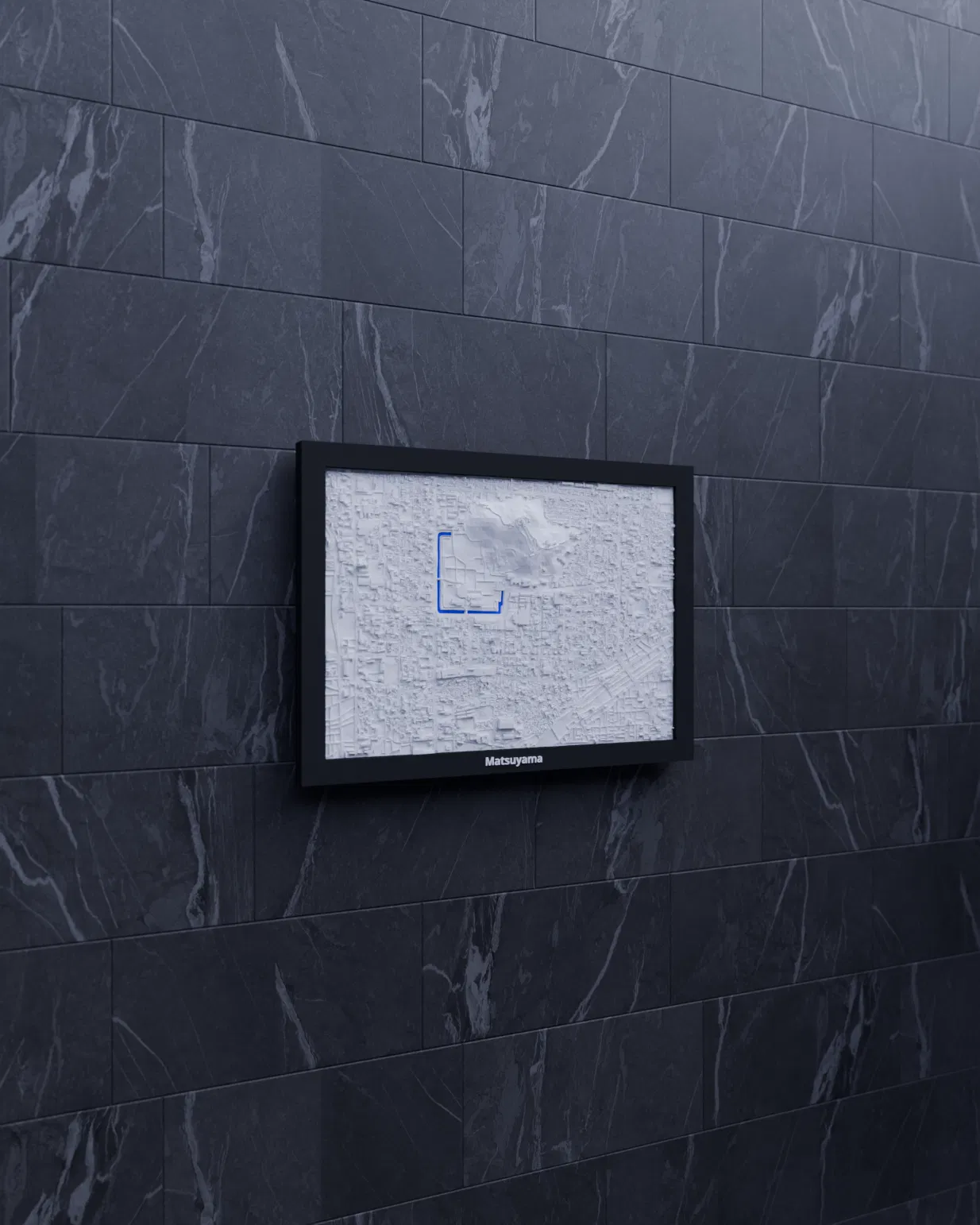 Bản thu nhỏ địa hình 3D của Matsuyama (Nhật Bản), dựng từ dữ liệu địa lý để tái hiện terrain chân thật. Kích thước in 170.5 x 119.5 mm, có nhiều lựa chọn frame kèm lỗ treo và print profile classic/arachne.