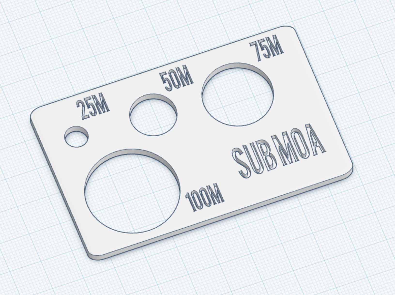 Thước đo SubMOA Card dạng thẻ theo hệ metric (hệ mét), phiên bản đơn hướng (unid). Phù hợp để kiểm tra độ chính xác khi bắn và so sánh kích thước nhóm đạn trên bia.