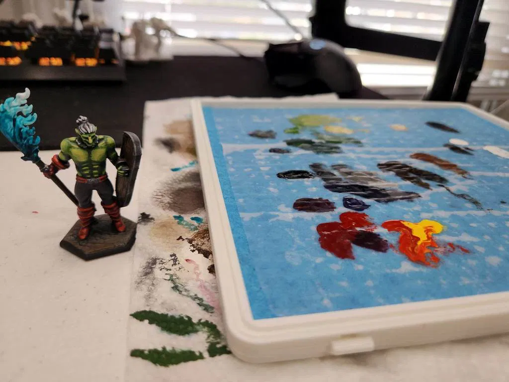 Cái bảng màu ẩm này được thiết kế để vẽ mô hình thu nhỏ, với tiêu chí rẻ và dễ kiếm. Nó dùng mút cellulose và giấy nến, có gioăng TPU để giữ ẩm qua đêm và rãnh cắt giấy tiện lợi. Kích thước in vừa vặn trên Ender 3.