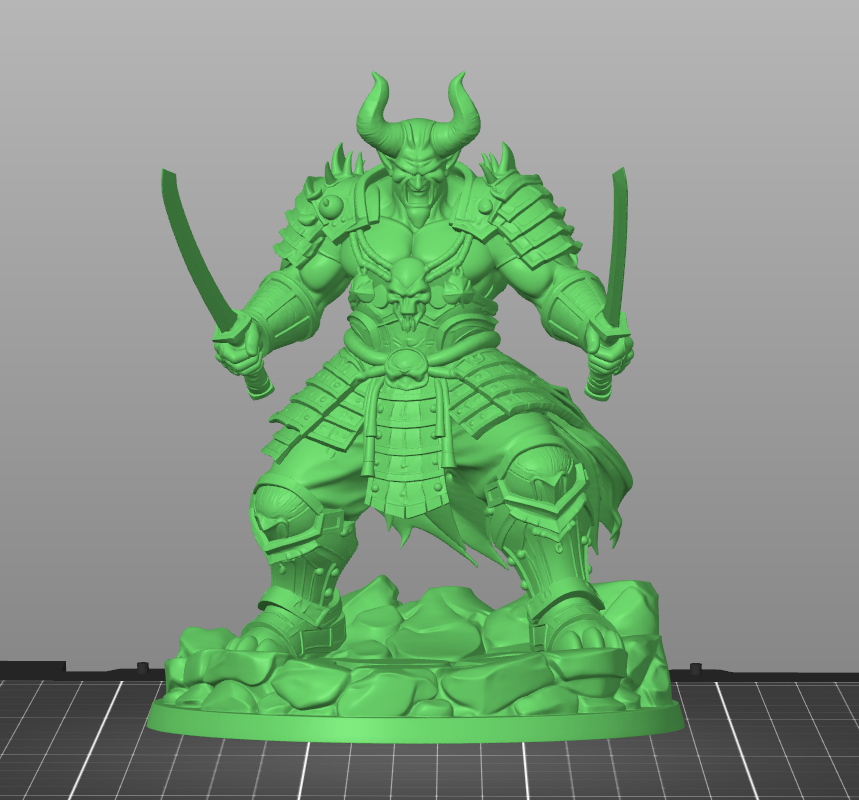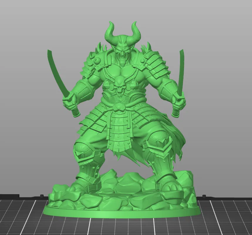 OniDualKatana #InfernalBerserker #FantasyBoss #Tabletop #DnD #Pathfinder #JapaneseOni #DualWielder #3DPrintFigure #DarkFantasy