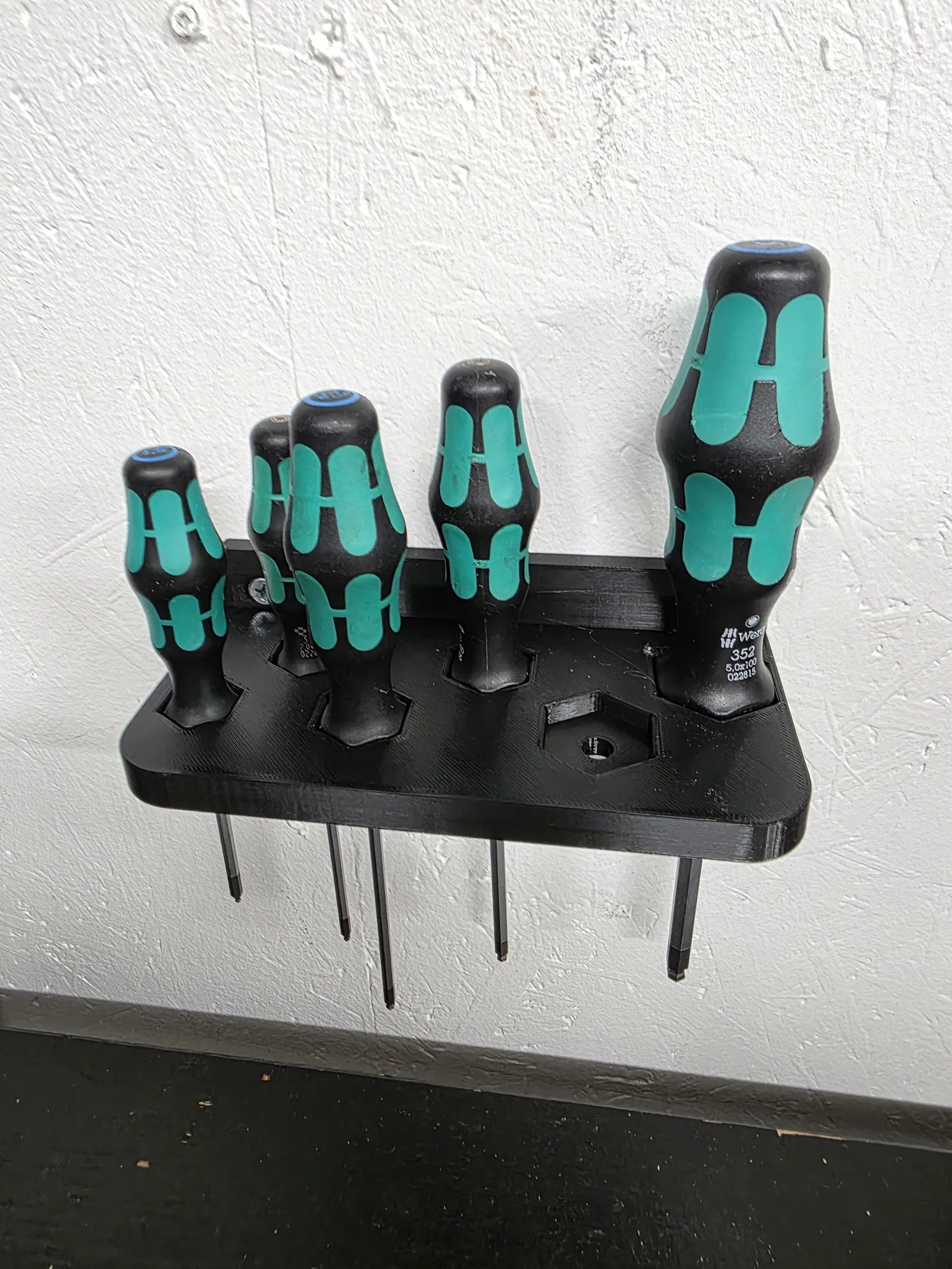 Giá treo tường cho Wera Allen key screwdrivers, giúp sắp xếp dụng cụ gọn gàng và dễ lấy bằng một tay. Thiết kế ôm khít, lắp bằng ốc vít tiêu chuẩn, in 3D không cần supports. In PLA hoặc PETG.
