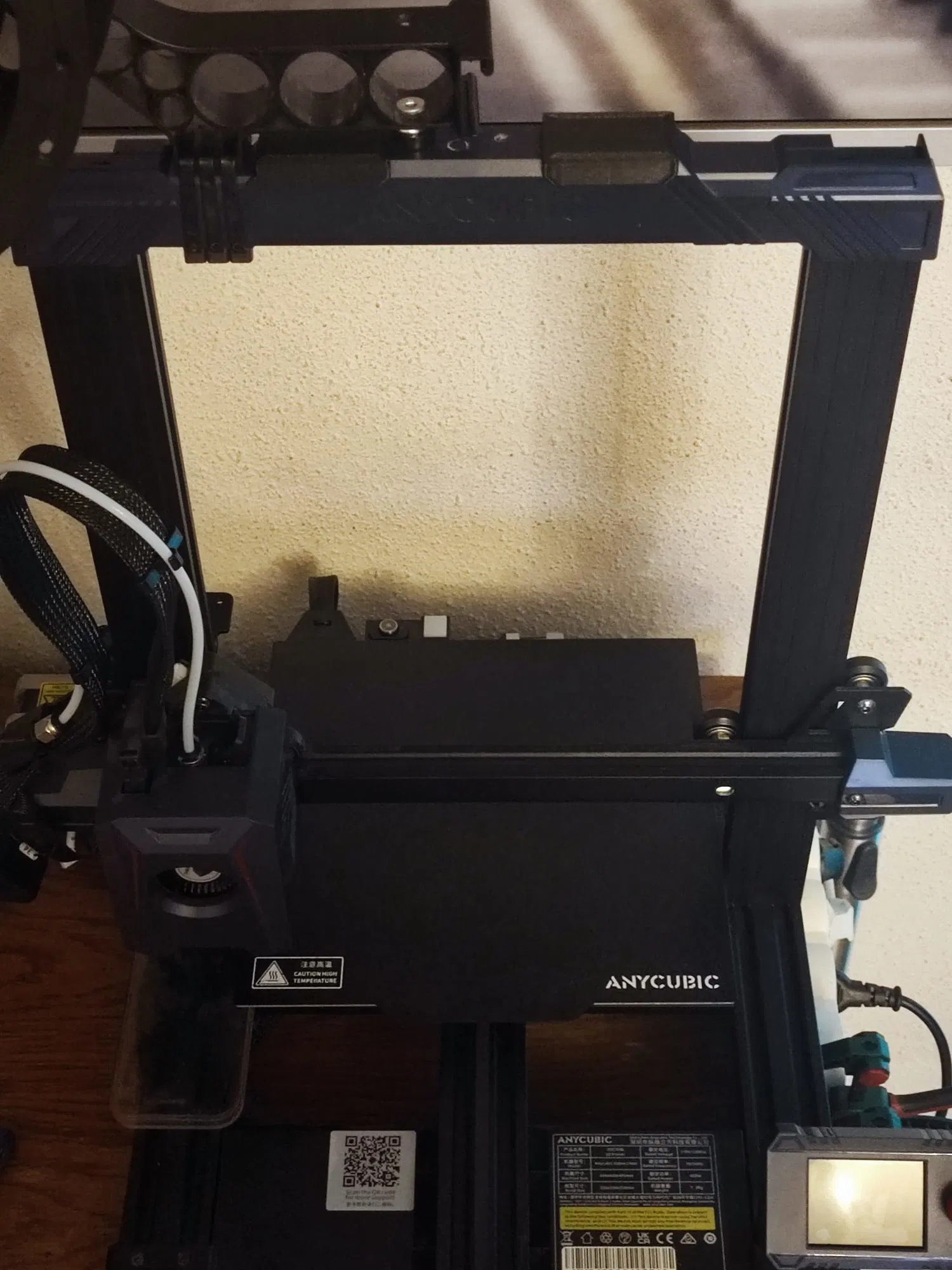 Giá đỡ LED pod gọn nhẹ gắn lên thanh ngang trên của Anycubic Kobra 1 và Kobra 2 series. Tương thích đèn LED pod TEMU, lắp chắc chắn, chiếu sáng thẳng vùng in để dễ quan sát mà không cần sửa khung hay đi dây.