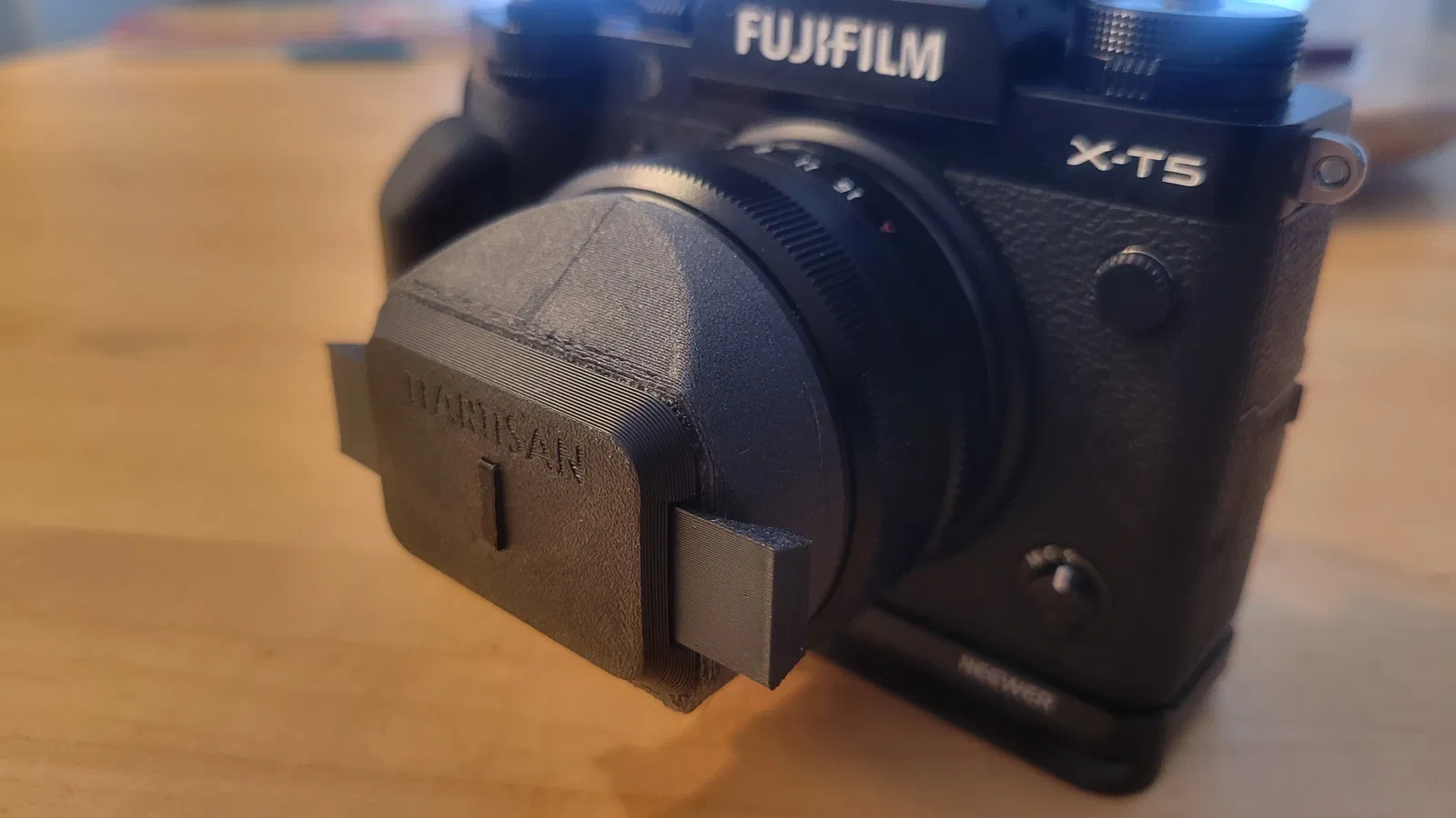 Lens hood vuông và cap cải tiến cho TTArtisan 27mm F2.8. Đã test trên Fuji X‑T5 không bị vignetting. Gắn kiểu friction mount, khuyên in PET‑G fiber filled hoặc Polycarbonate để hạn chế lỏng theo thời gian.