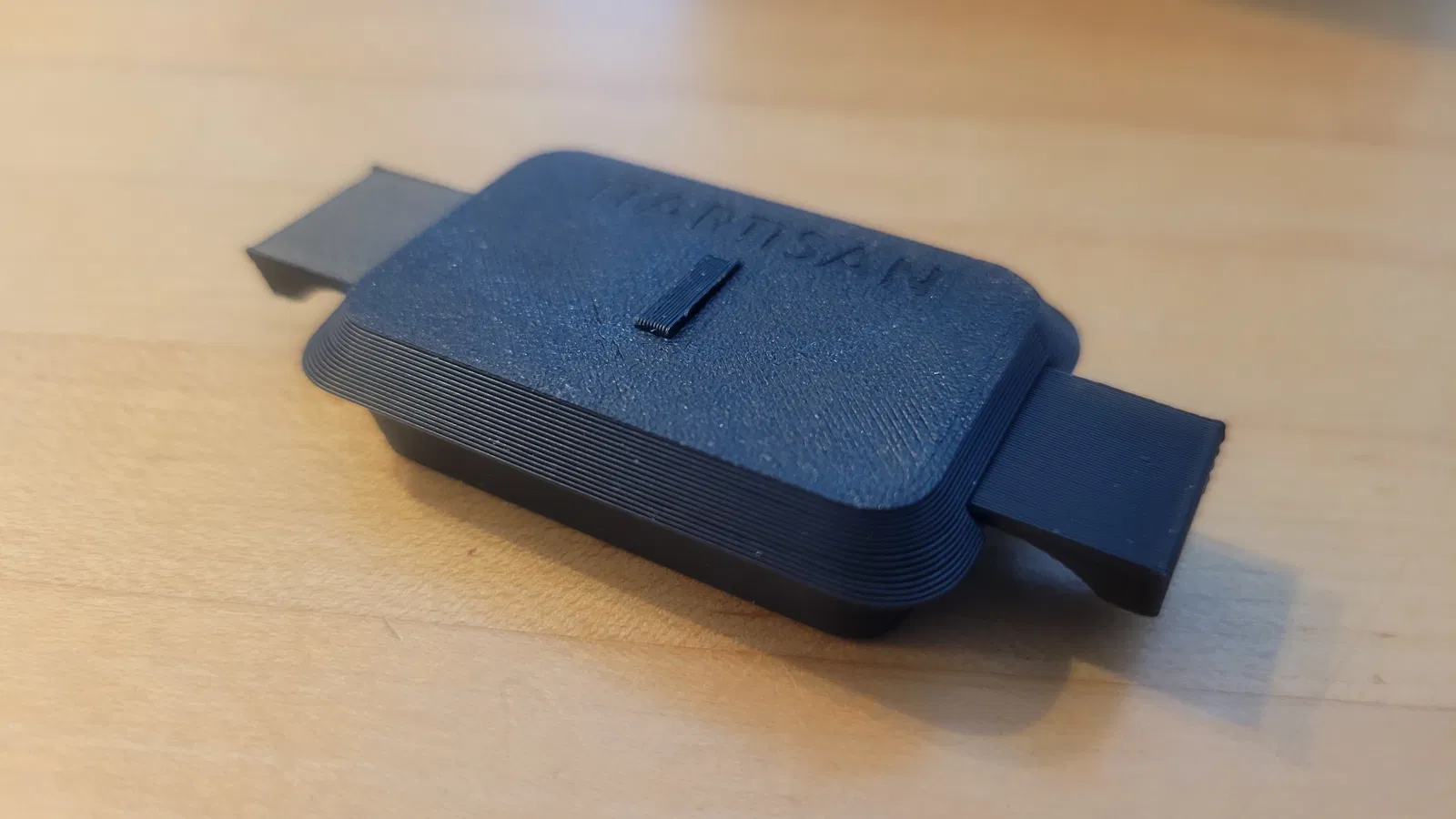 Sau khi in xong, luồn phần “latch” qua khe trên cap, rồi cố định lại bằng “pin”.