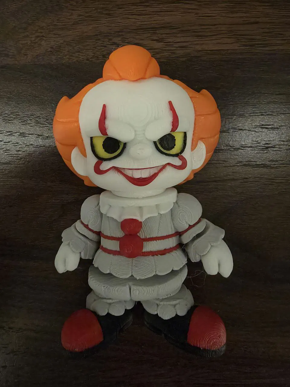 Figura Pennywise flexible với 2 đầu có thể thay đổi: bản base và bản “luz de la muerte”. Bạn có thể theo dõi tác giả trên MakerWorld để tải thêm nhiều mẫu miễn phí khác.