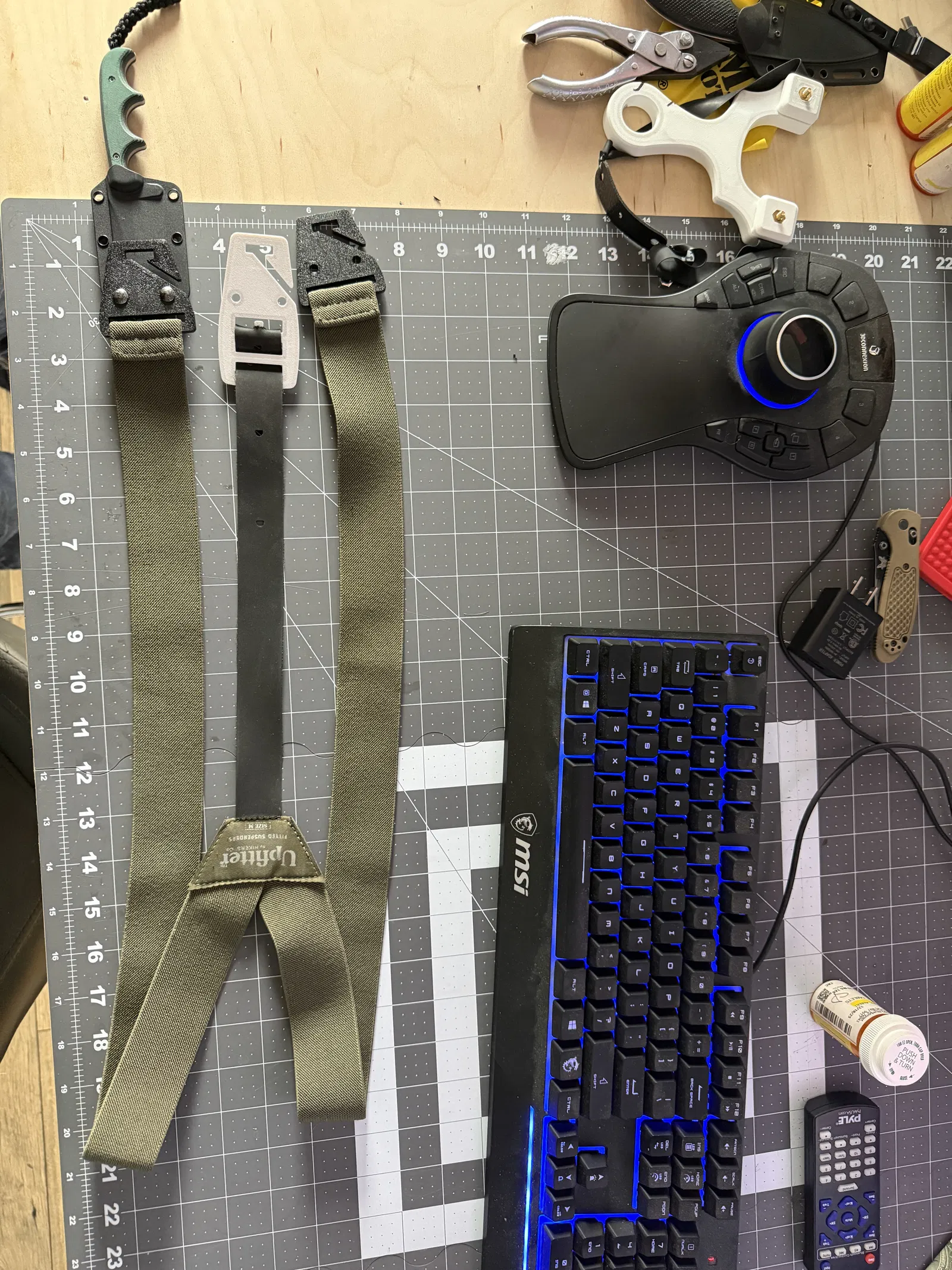 Mình chuyển qua dùng dây đeo quần (suspenders) và cặp móc Hikers-Uplifters mua về thì ngắn hơn mình tưởng, nên mình tăng thêm khoảng 5–10 mm chiều dài, đồng thời thêm lỗ 5 mm để gắn bao dao (knife sheath) vào cái móc.