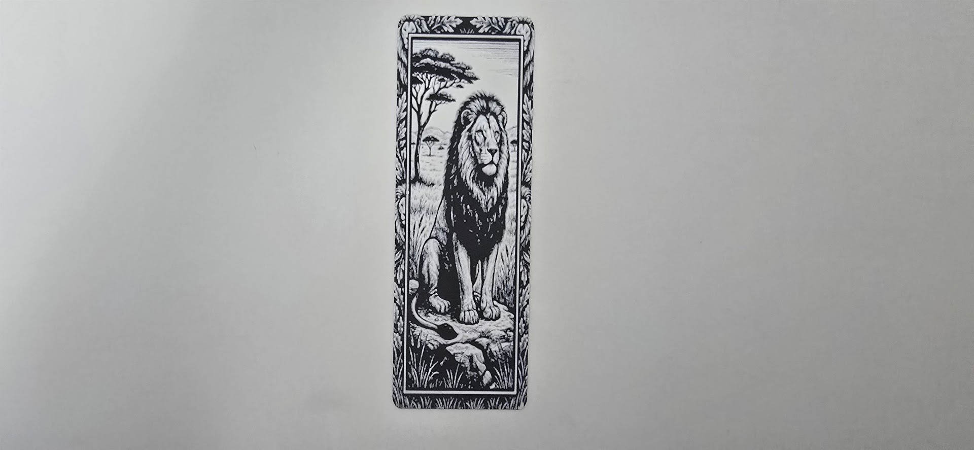 Mẫu bookmark 3D Majestic Lion Savanna King với hình sư tử oai vệ, chi tiết rõ nét, hợp làm quà tặng và phụ kiện đọc sách. Phong cách monochrome, chủ đề thiên nhiên – hoang dã châu Phi.