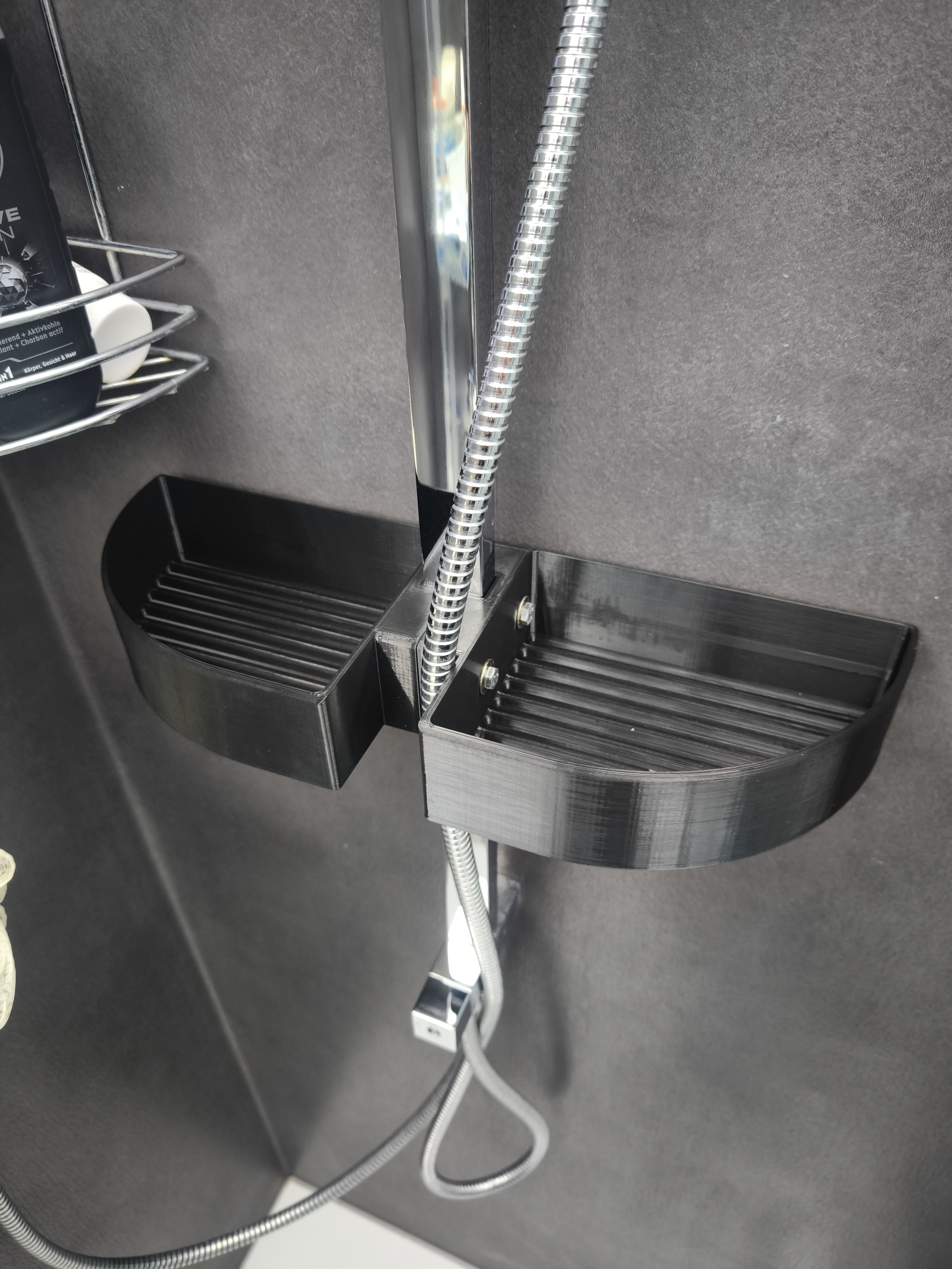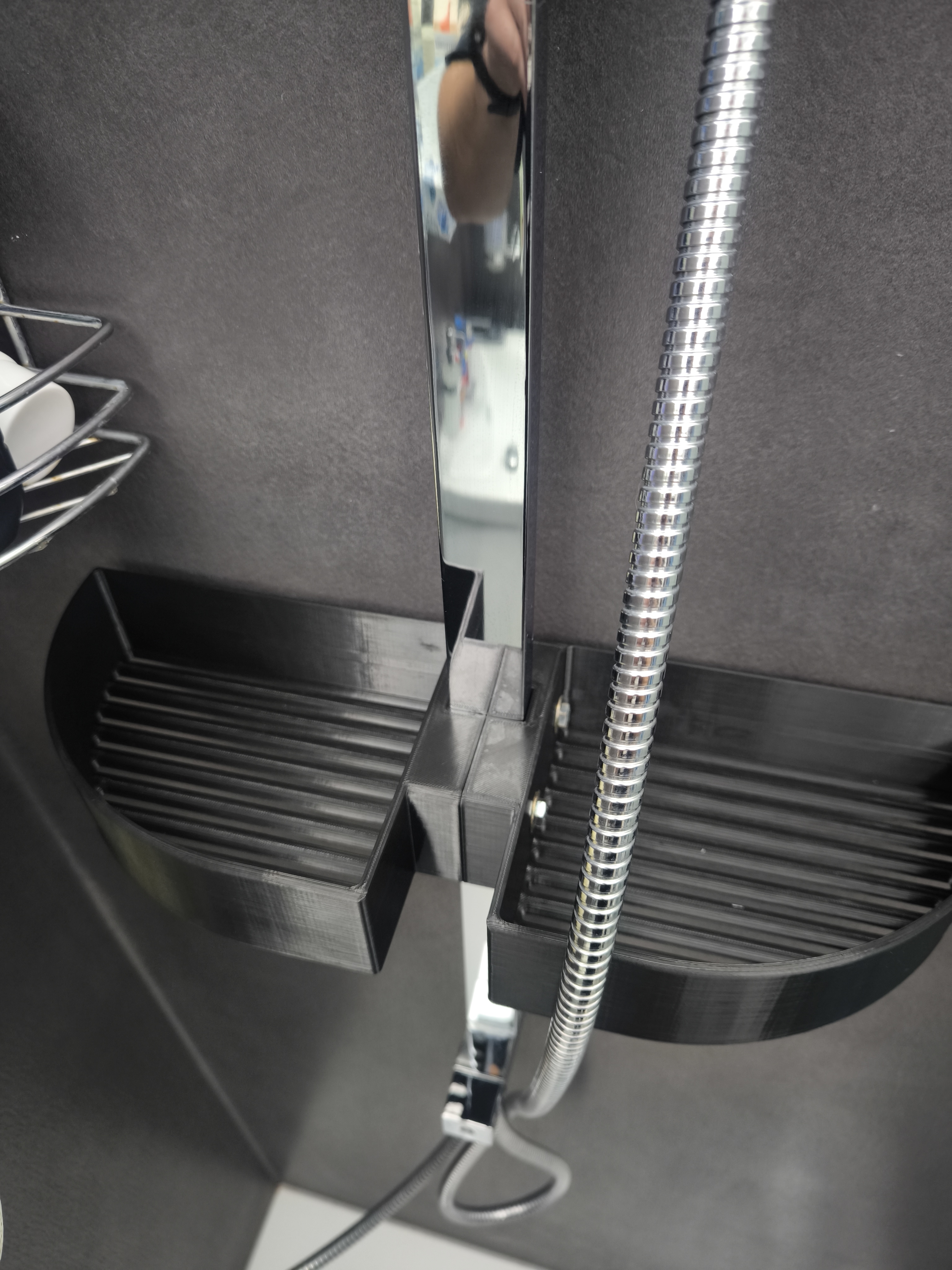 Kệ để đồ phòng tắm Easy Shower Shelf, thiết kế để chứa được nhiều chai sữa tắm và dầu gội. Gắn lên ống hộp 30 x 18.25 mm (cách tường tối thiểu 32 mm), có file STEP để chỉnh lỗ theo nhu cầu.