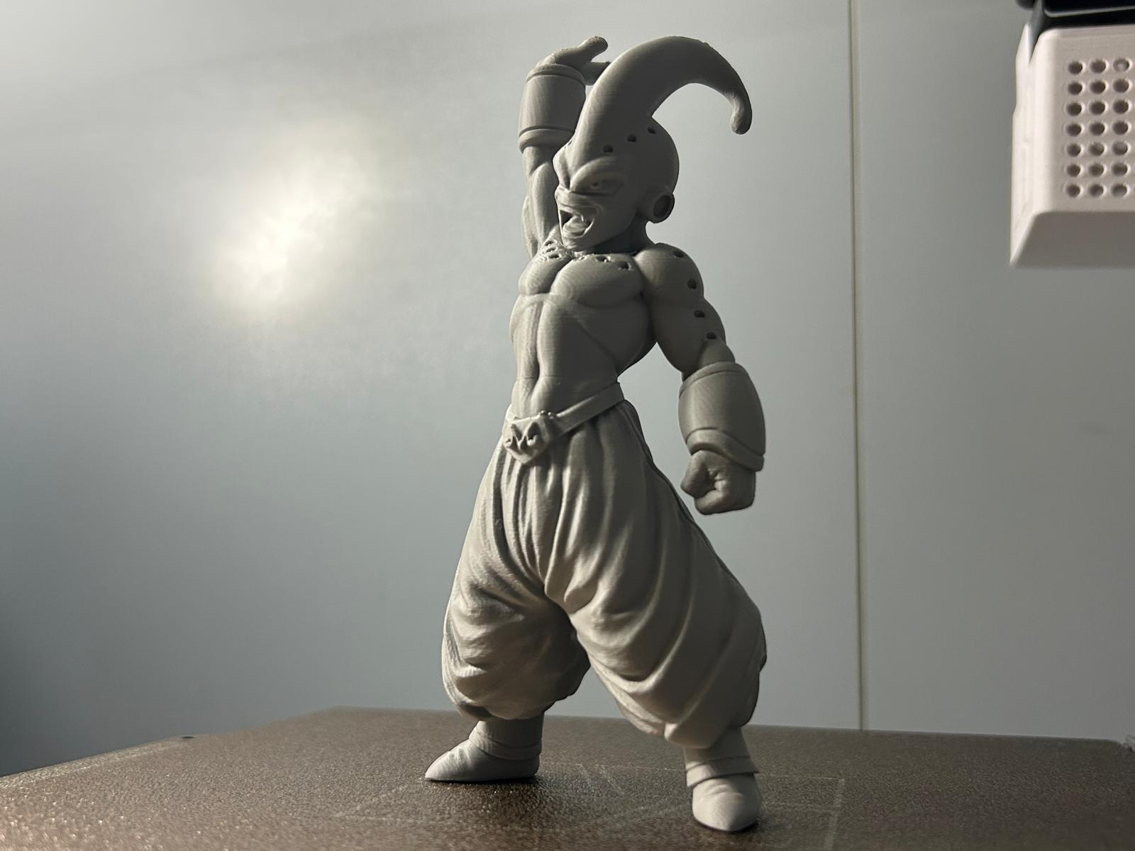 Mô hình action figure Kid Buu trong Dragon Ball. Gợi ý thông số in: nozzle 0,40mm, filament 1,75mm, layer 0,08mm, infill 5%, walls 2. Lưu ý quan trọng: in mẫu theo hướng lật ngược (upside down).
