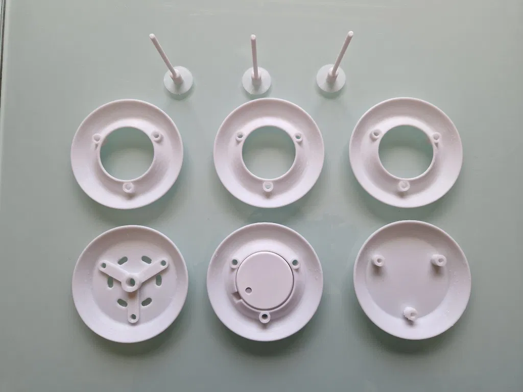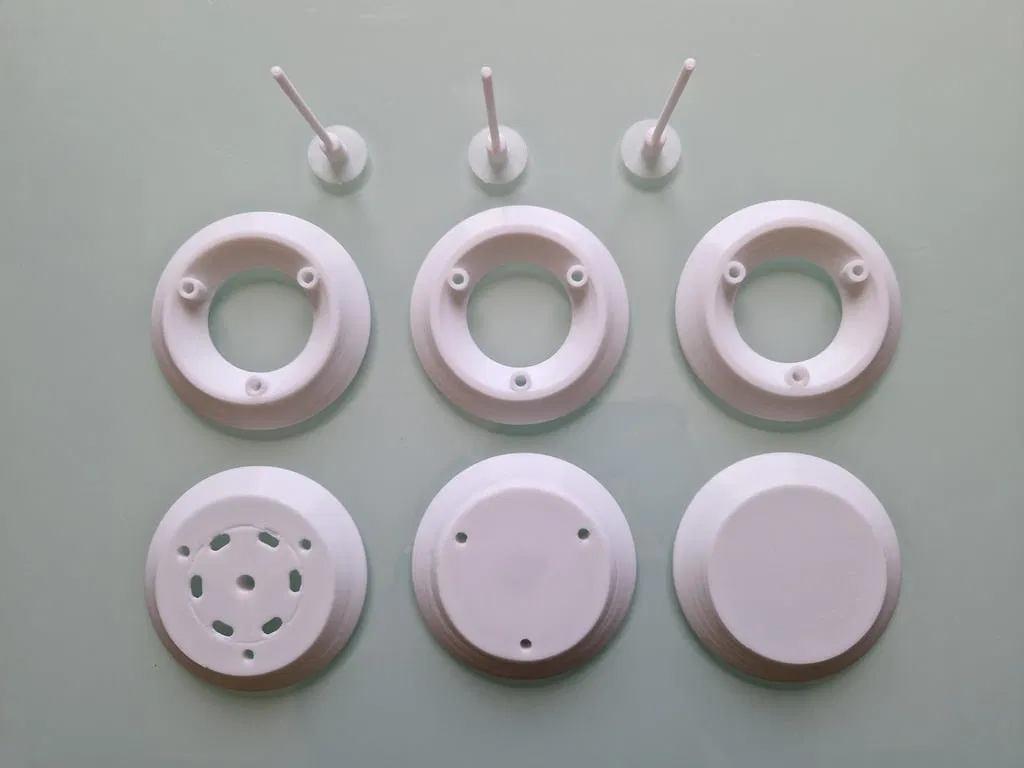 Perno để thay thế các thanh ren của Gill Shield Weather Station case for RuuviTag. Phần này cần được ép chặt (press-fit) vào nắp trên. Có thể in kèm “skirt” để tăng diện tích dán băng keo hai mặt và dán cố định thay vì dùng ngàm/giá treo tường.