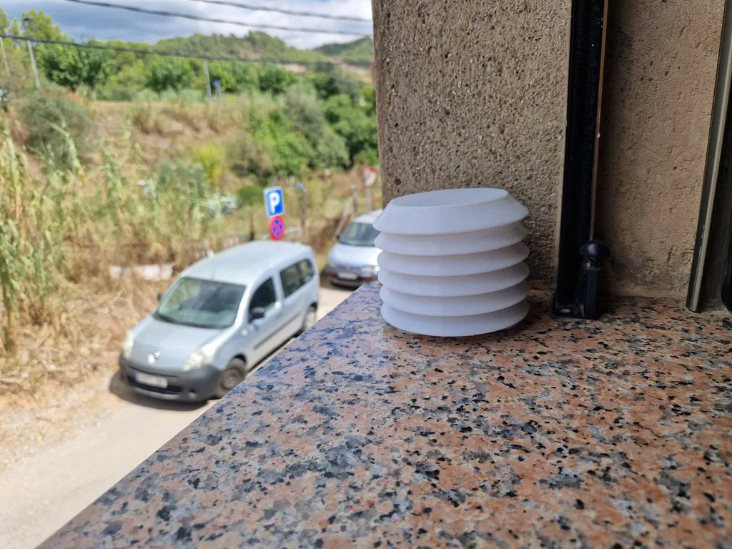Perno dùng để thay các varilla roscada (thanh ren) của vỏ Gill Shield Weather Station cho RuuviTag. Thiết kế press-fit vào nắp trên; có thể in thêm skirt để dán băng keo hai mặt thay cho giá treo tường.
