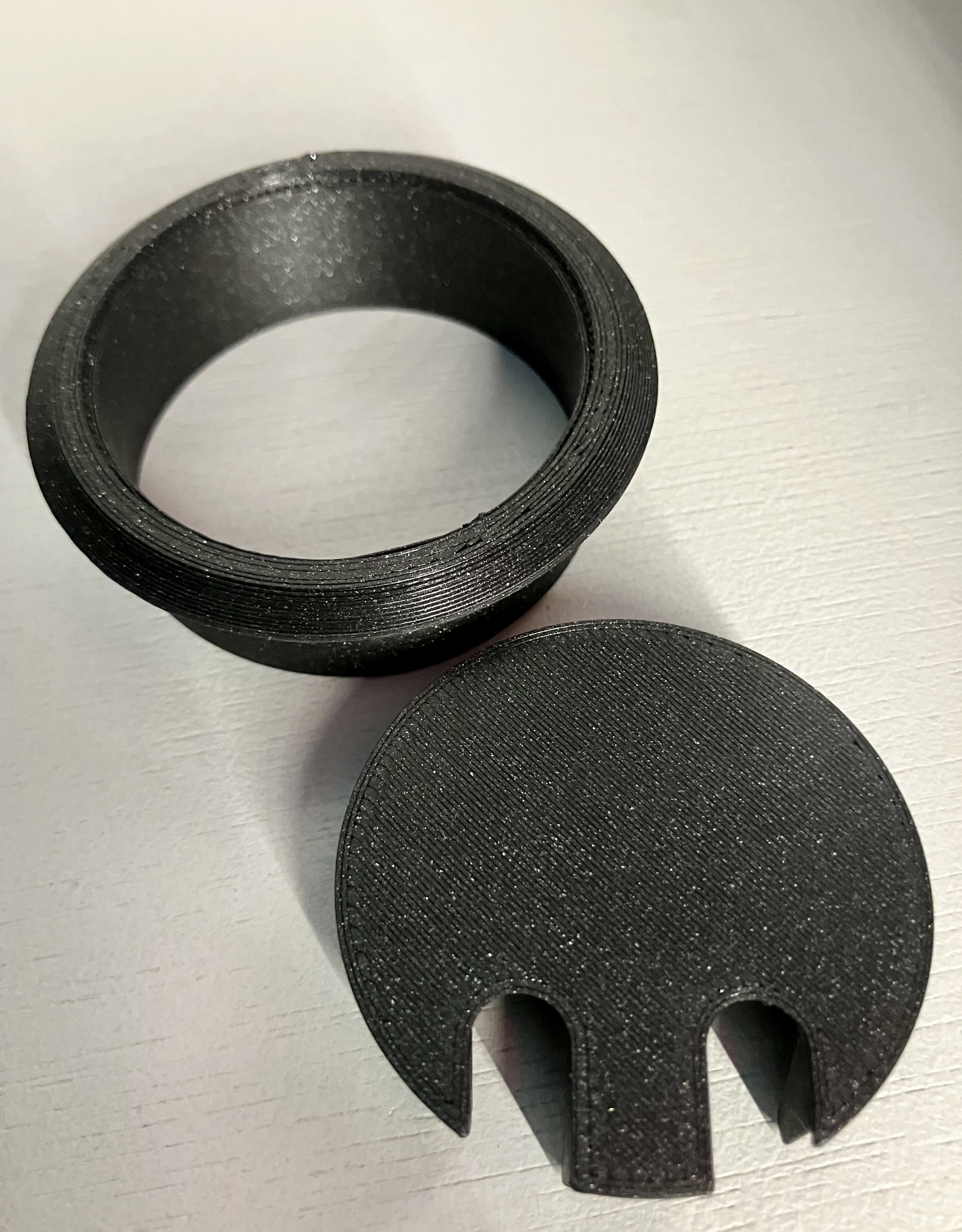 Bộ gồm ống lót cho lỗ 50mm và nắp che có 2 lỗ đi dây, dùng để gọn gàng và bảo vệ chỗ dây nguồn PSU trên Prusa Mini+. Phù hợp khi cần hoàn thiện phần lỗ đi dây cho sạch sẽ.