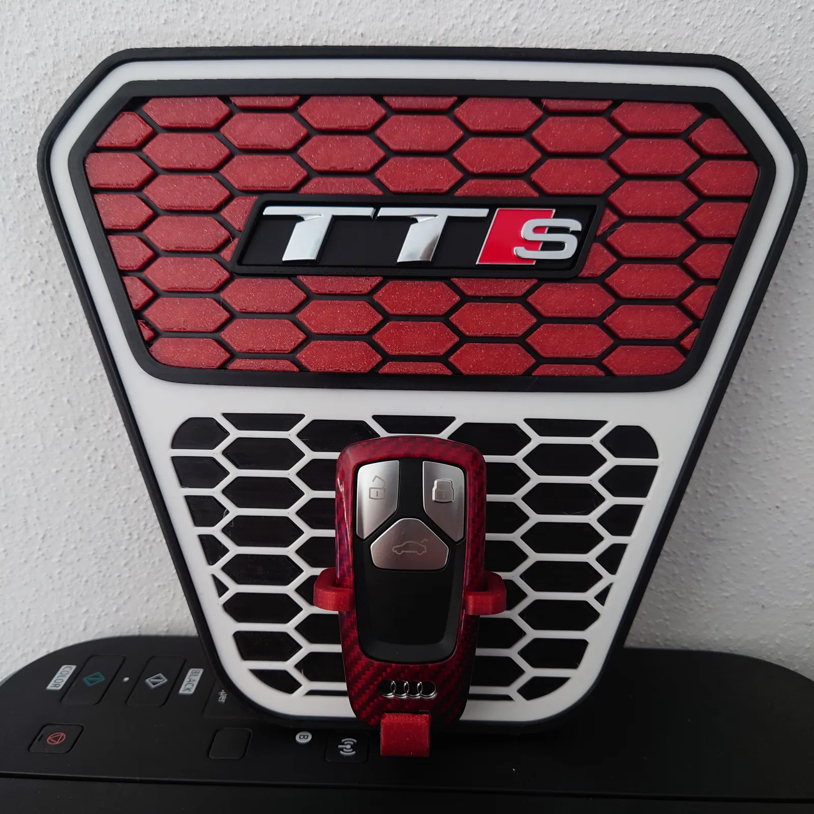 Mẫu móc treo chìa khóa Audi dành cho fan Audi. Thiết lập in gợi ý: layer height 0.3 mm. Tương thích in với PLA hoặc PETG, phù hợp để treo chìa khóa gọn gàng.
