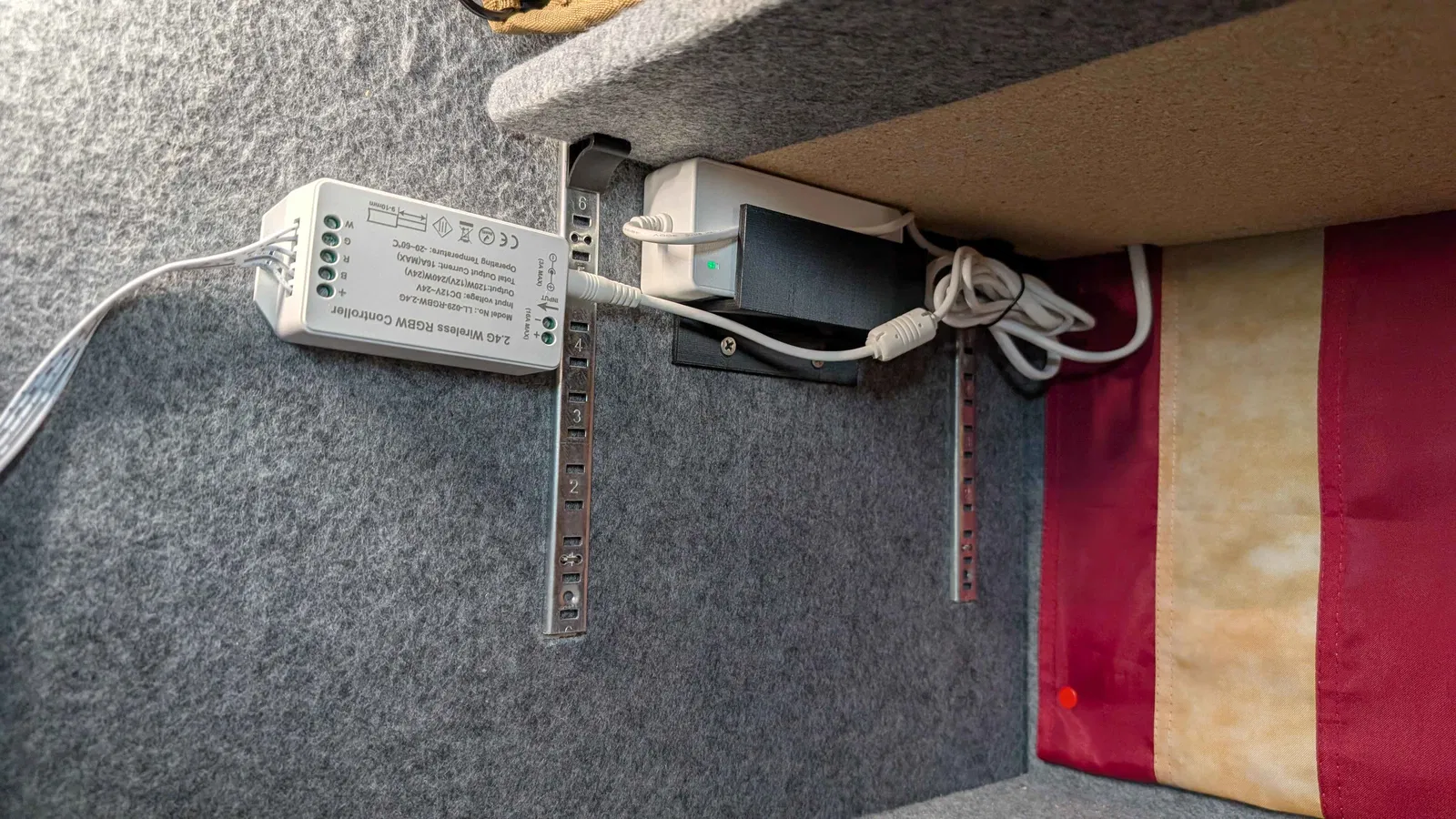 Bracket/kệ nhỏ gọn để gắn và giấu gọn DC inverter dùng cho hệ đèn 12V. Kích thước dày 1.4" dài 4", bắt bằng vít inox #6. In theo chiều dọc, không cần supports.