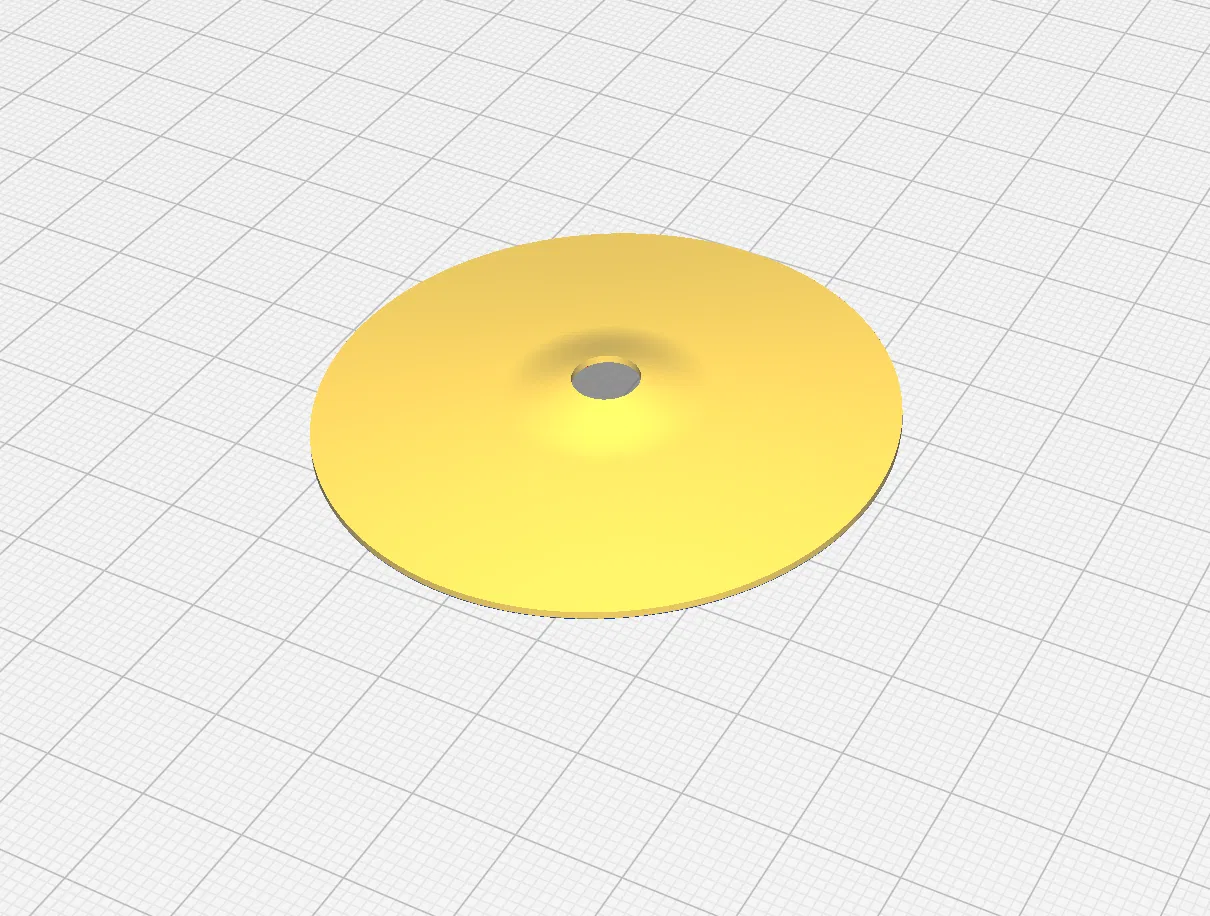Mẫu pendant hình cymbal của bộ trống, dùng để treo cây Noel hoặc móc chìa khóa. Có thể scale kích thước tùy ý; tác giả gợi ý in với infill concentric để nhìn đẹp hơn.