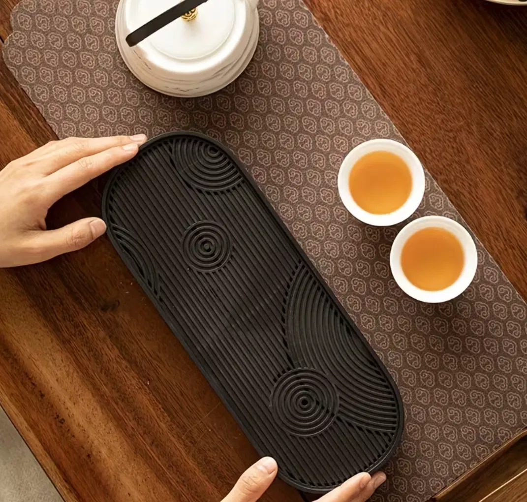 Hệ thống rãnh nâng giúp dẫn phần nước và trà dư ra khỏi tách và dụng cụ pha trà, rất hợp cho các buổi trà theo kiểu Gongfu. Form tối giản, thấp gọn nên dùng được cho cả setup trà truyền thống lẫn hiện đại.