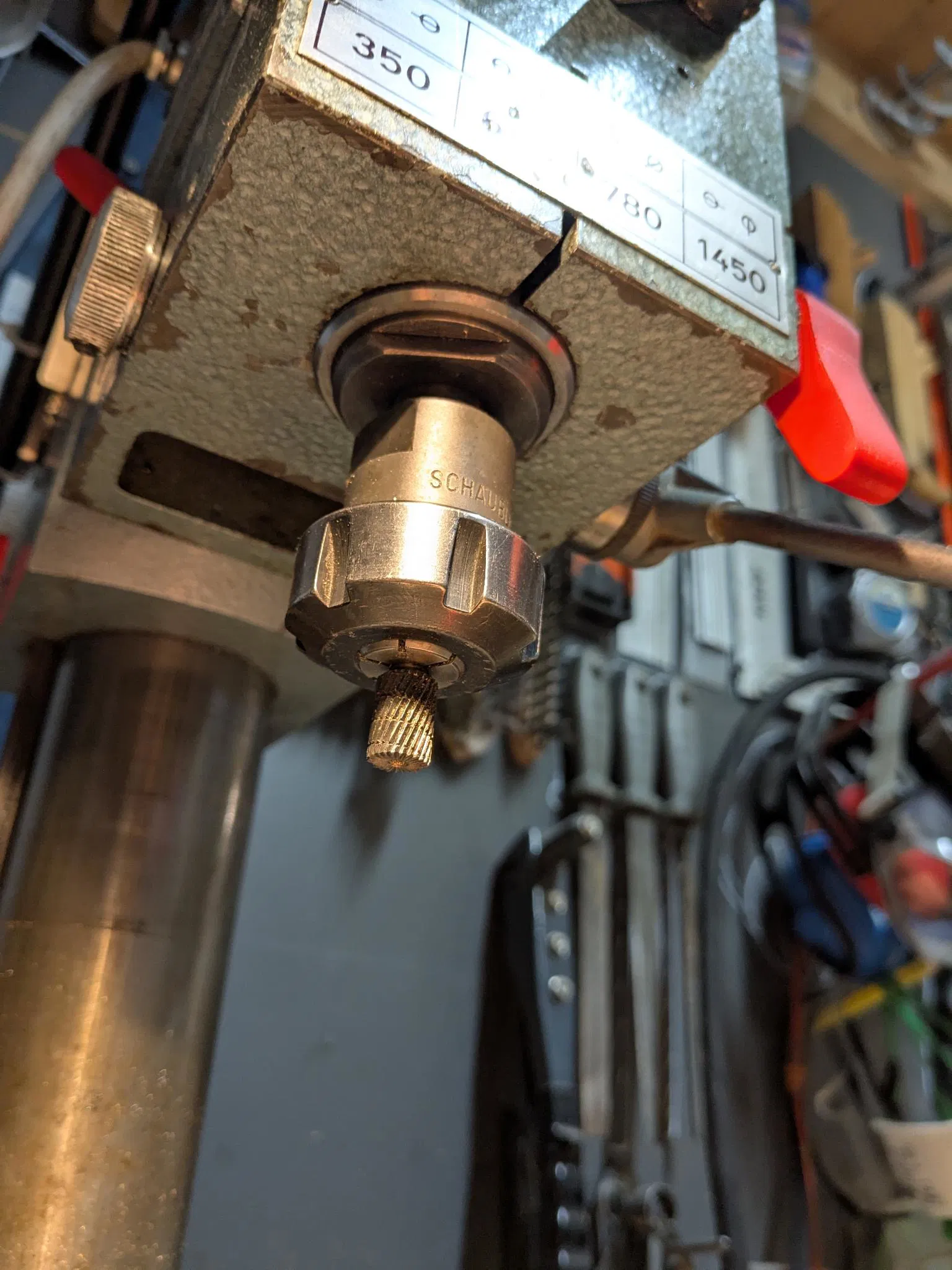Cờ lê dùng cho trục chính máy phay Emcomat, hỗ trợ siết/mở collet ER-25. Mình có kẻ sẵn các vạch canh để dễ align với các rãnh, giúp thao tác nhanh và chính xác hơn.