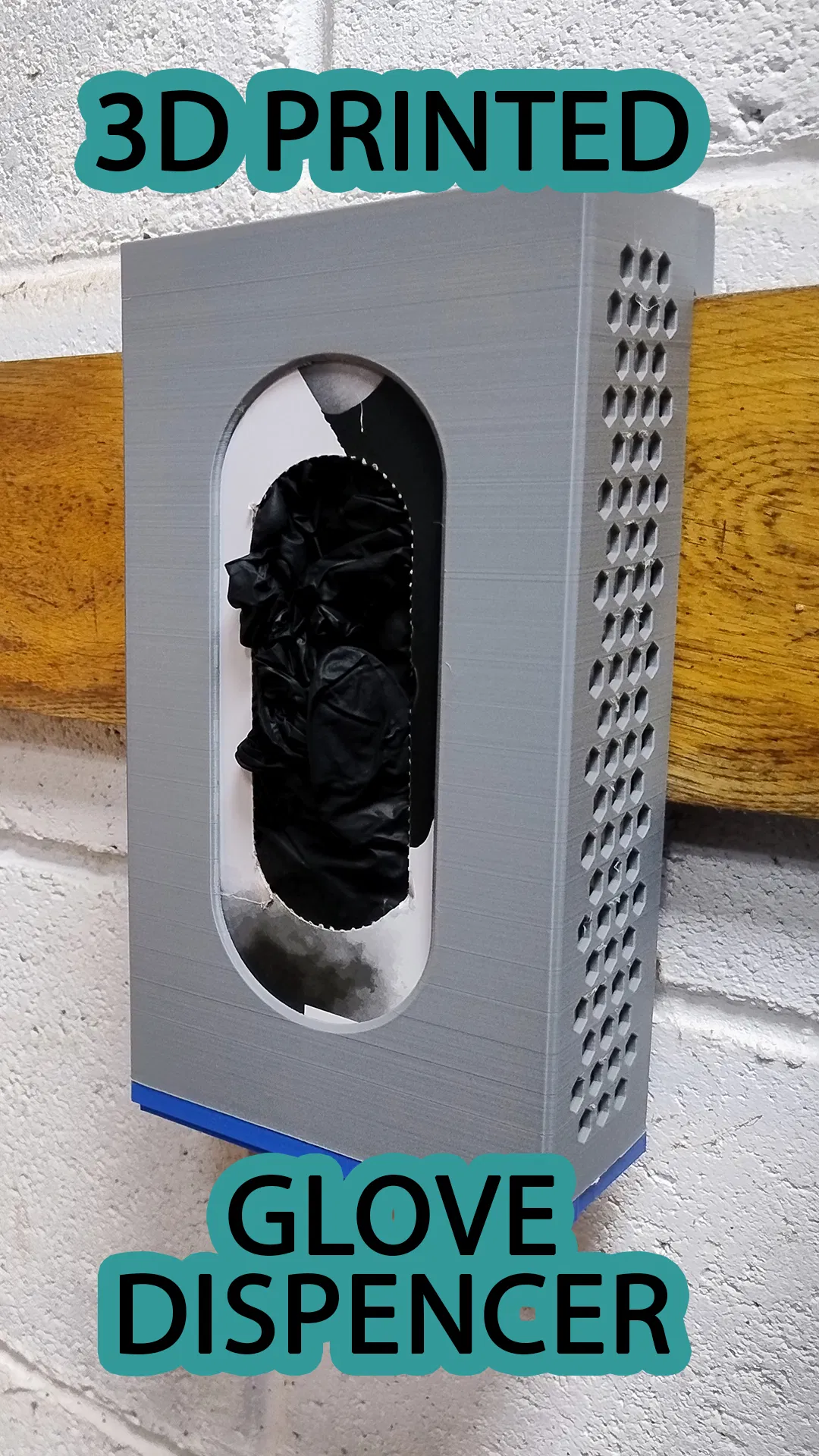 Giải pháp treo hộp găng tay latex lên tường French cleat cho gọn xưởng. Thiết kế dạng dispenser có thể mở rộng, “click” nối thêm module phía dưới để tiết kiệm không gian. Hỗ trợ PLA, infill ~15%, không cần support.