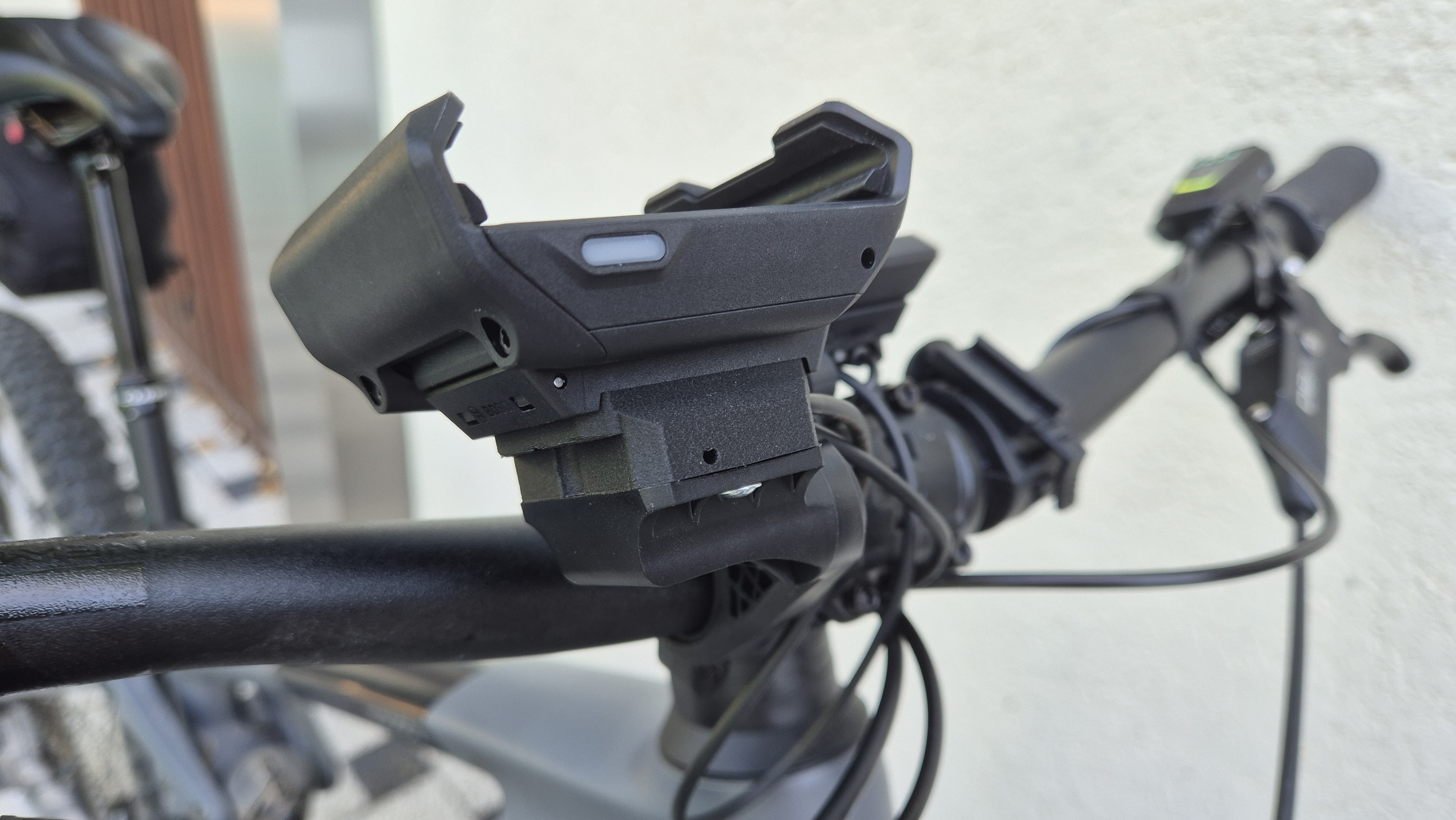 Adapter xoay ngàm Bosch Smart System Grip 90° để gắn Kiox 300 và smartphone song song trên e-bike. Smartphone có thể vừa sạc vừa chạy điều hướng, Kiox vẫn chạy bình thường. Cần insert Ruthex M3 và vít M3.