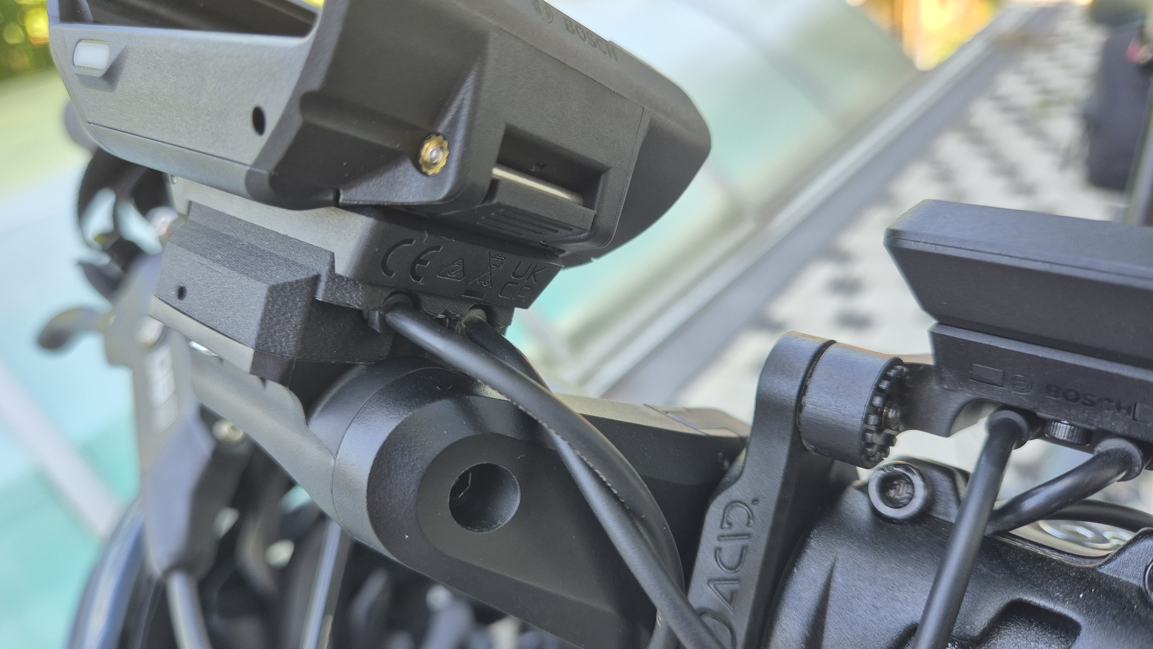 Adapter để xoay ngàm Bosch Grip 90°. Mình dùng Kiox 300 và smartphone song song. Smartphone vừa sạc vừa chạy dẫn đường, còn Kiox vẫn hoạt động bình thường.