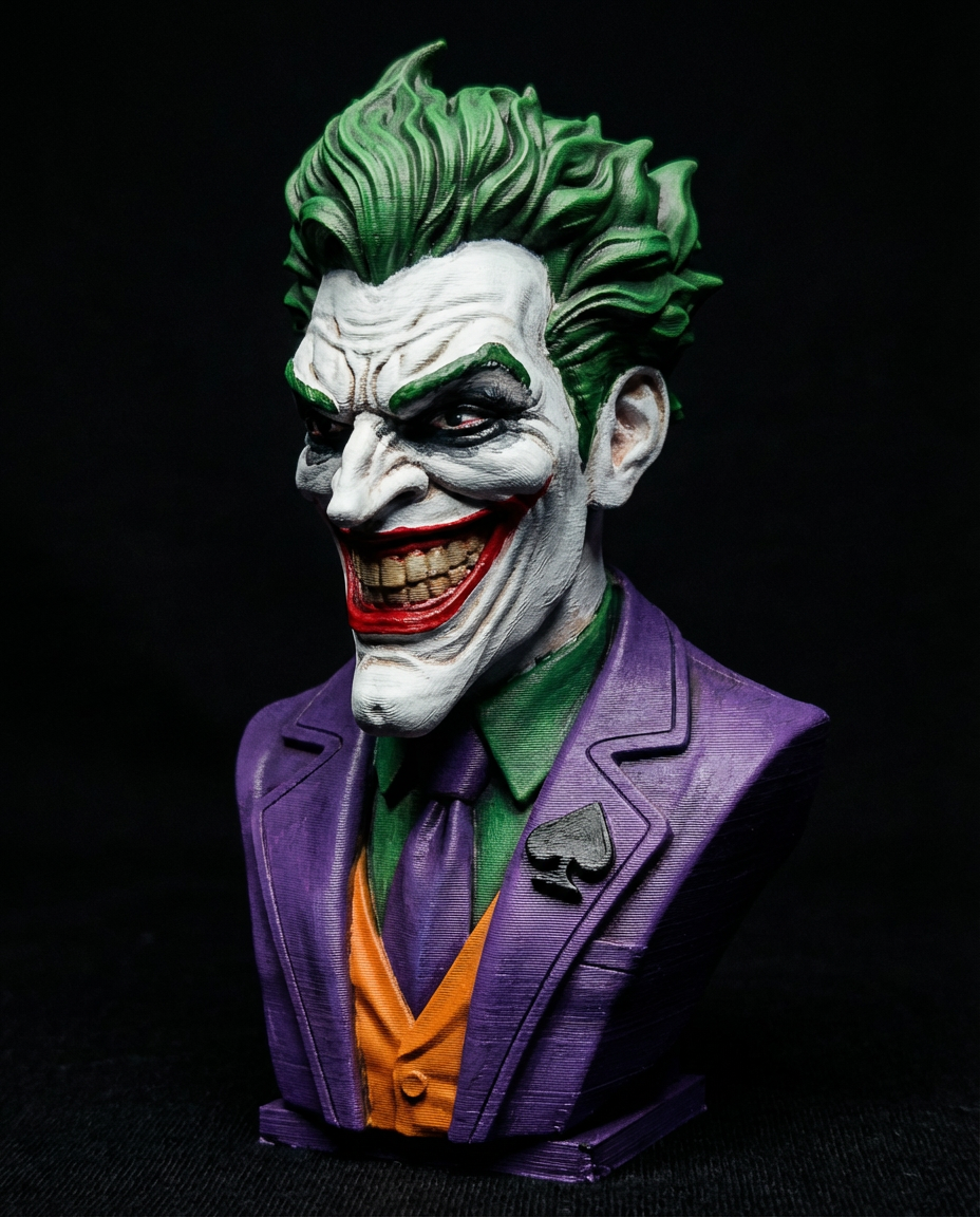 Mẫu bust The Joker cực kỳ chi tiết, nổi bật với nụ cười điên dại và bộ suit kinh điển của phản diện huyền thoại. Rất hợp để trưng bày và dễ sơn/painting để nhân vật “sống” hơn sau khi in 3D.