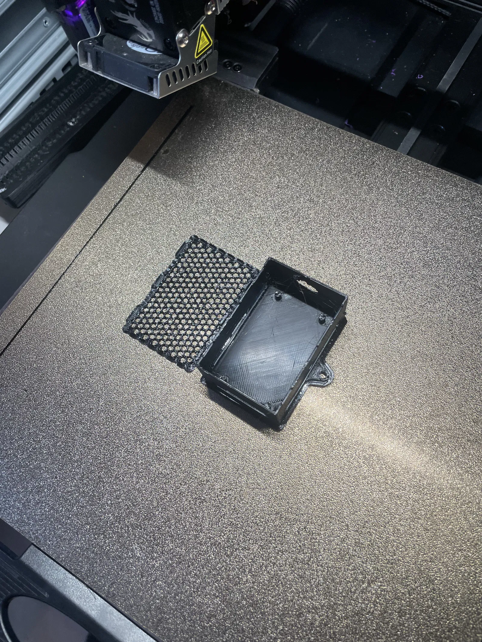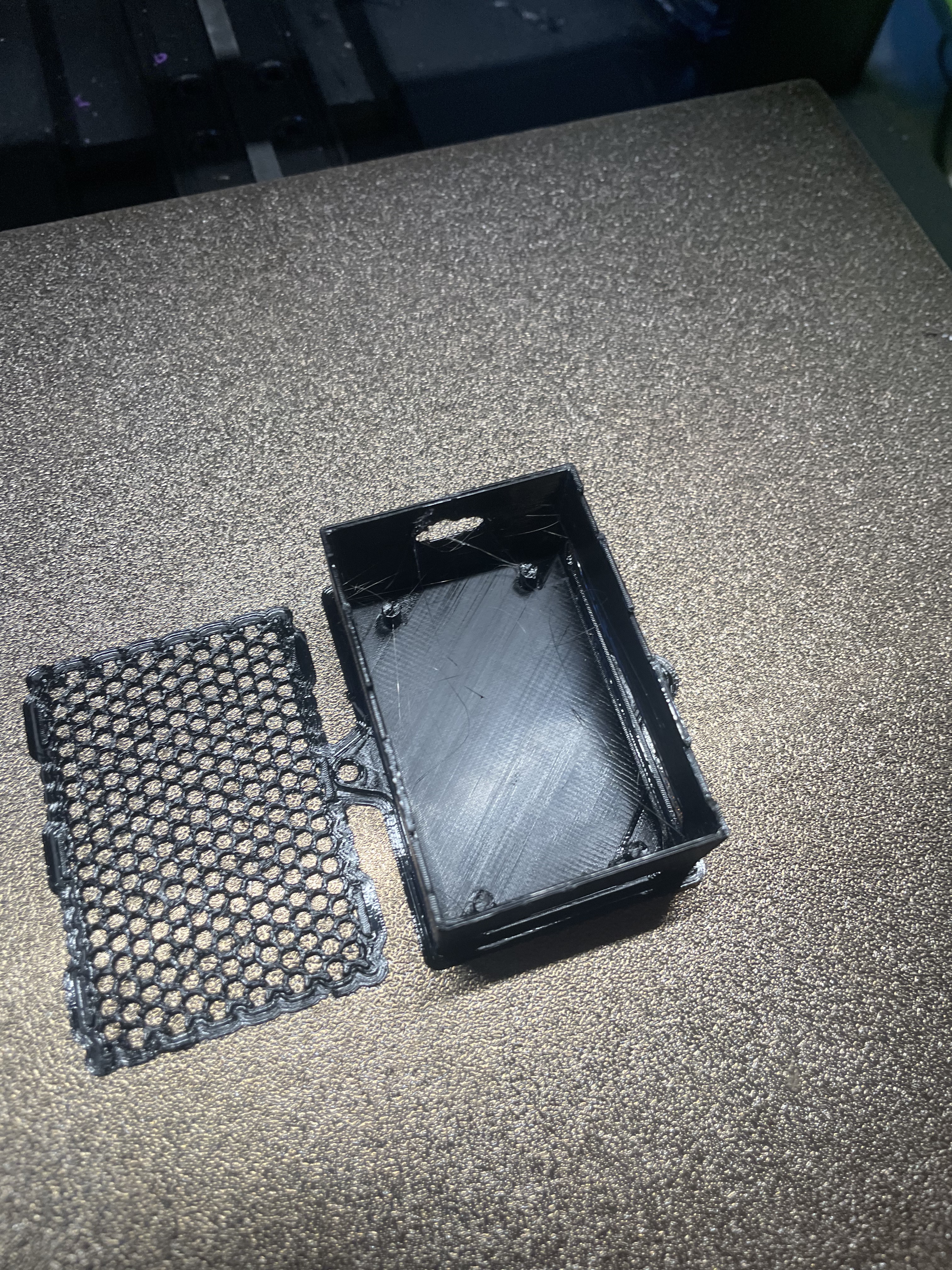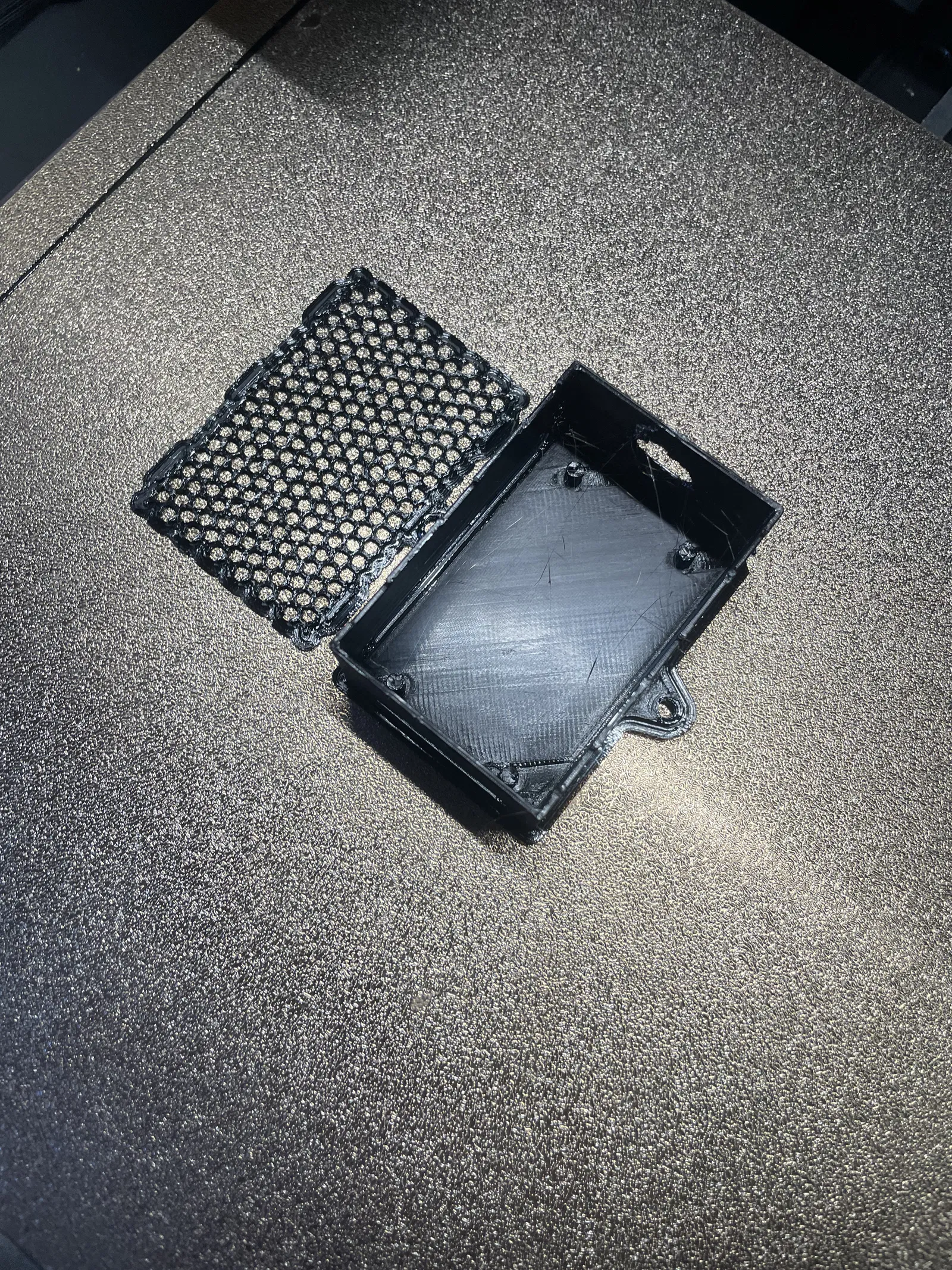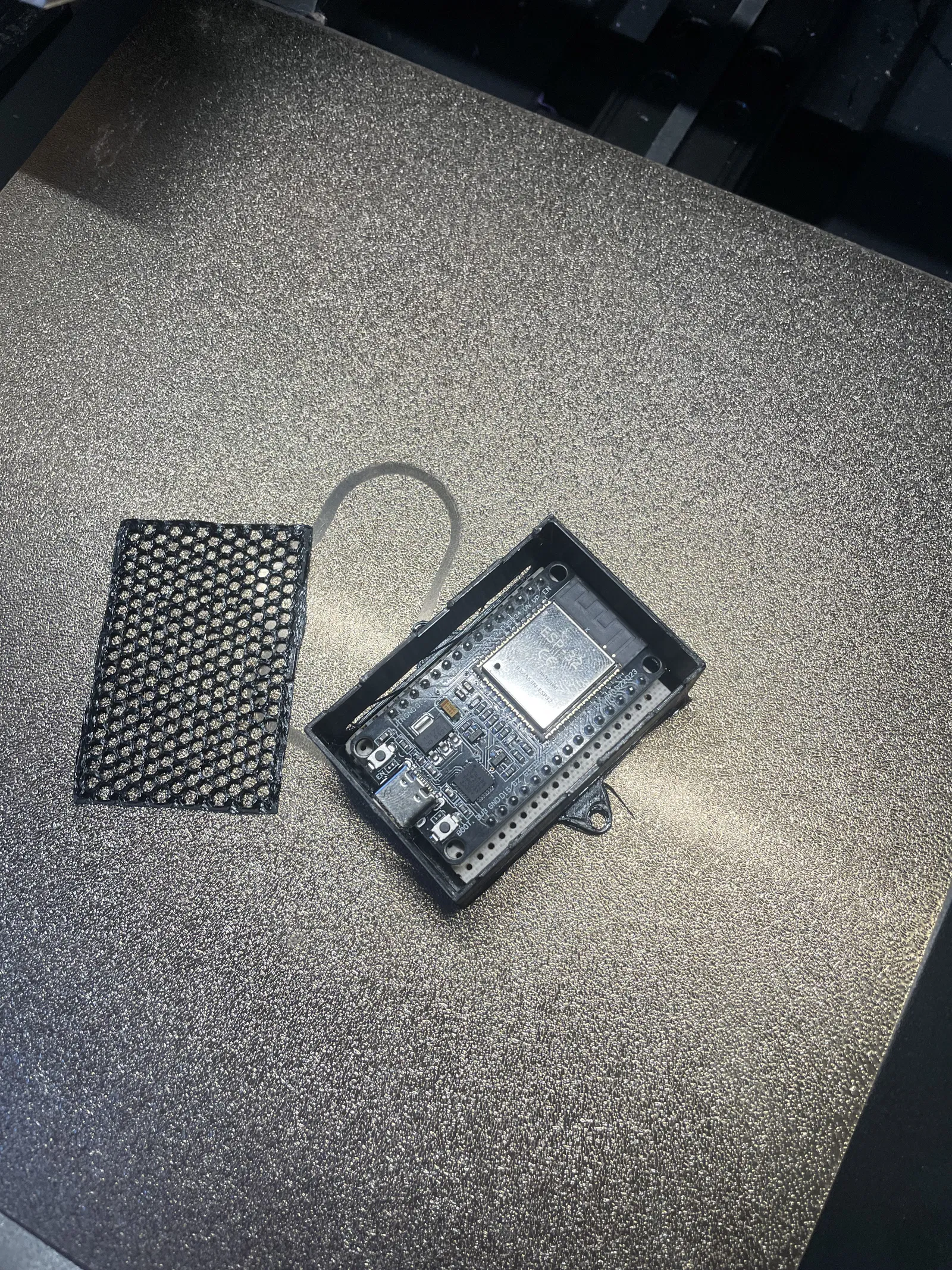 Vỏ enclosure kiểu công nghiệp dành riêng cho board ESP32, thiết kế dày dặn, bắt tường 4 điểm chắc chắn. Lắp PCB bằng rãnh trượt không cần vít, có khoét chữ U để đi dây USB/cảm biến gọn, in không cần supports.