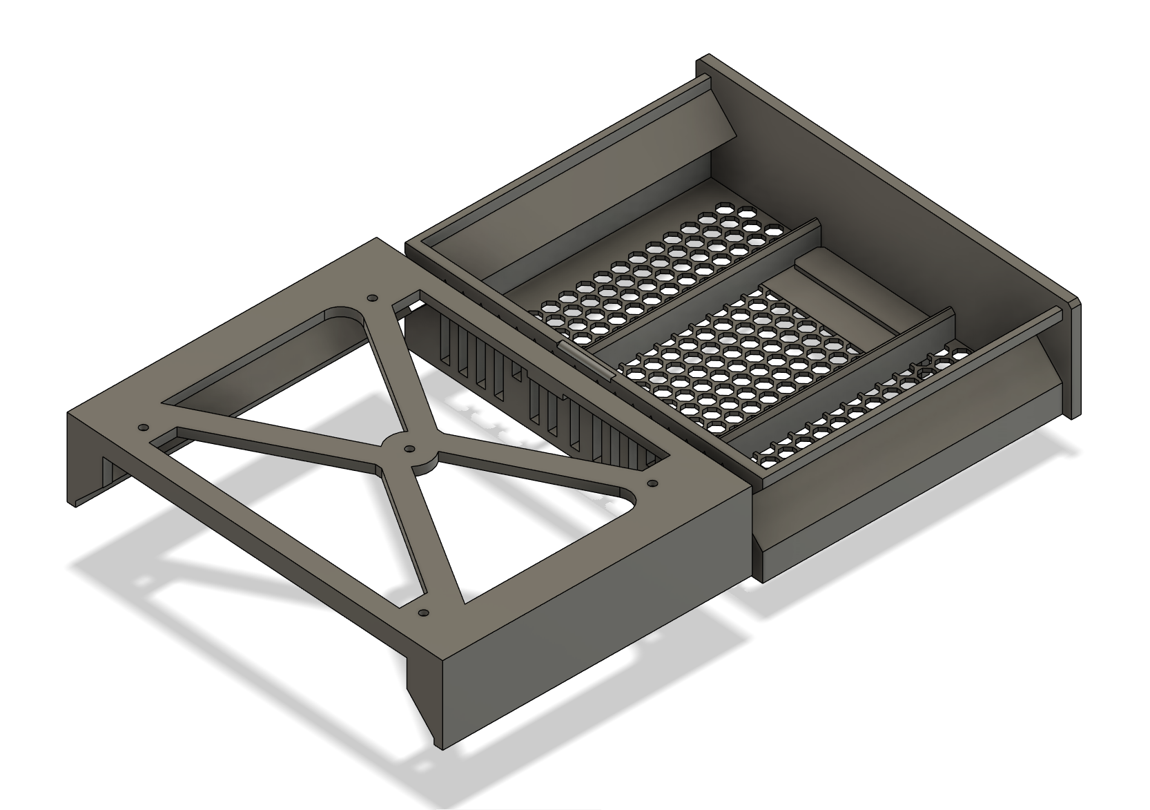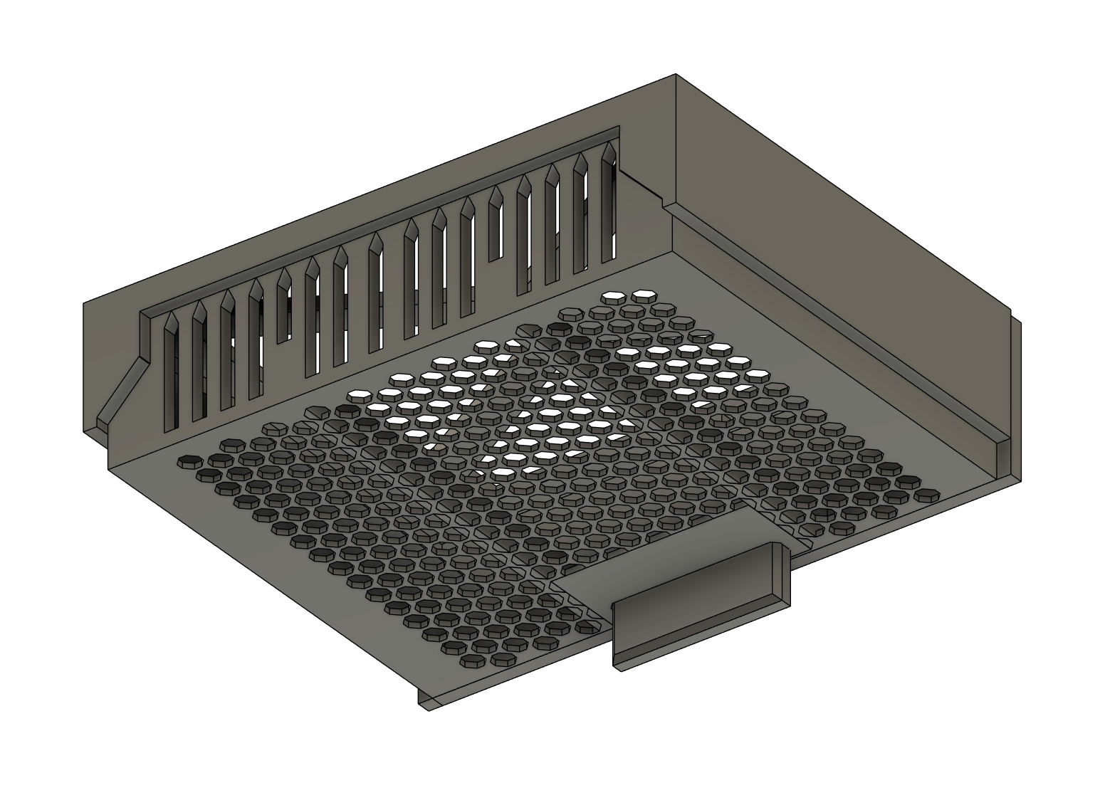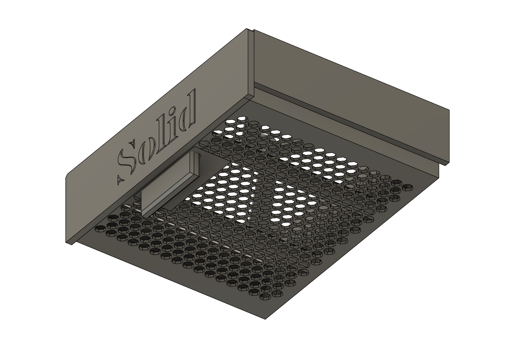 Ngăn kéo nhỏ tên thiết kế “Solid”, lắp dưới mặt bàn. Dài khoảng 16 cm, tối ưu để vừa gầm bàn gaming IKEA HUVUDSPELARE. In PLA, infill 15%, PRUSA i3 MK3 0.20mm SPEED, không cần supports.