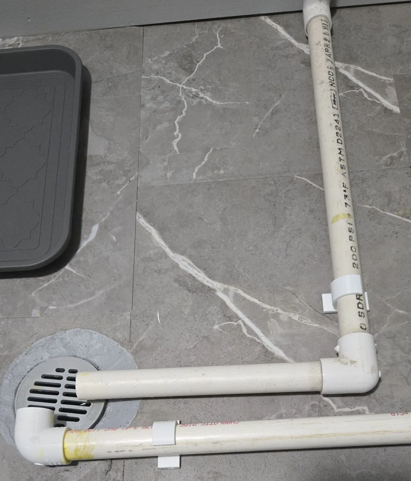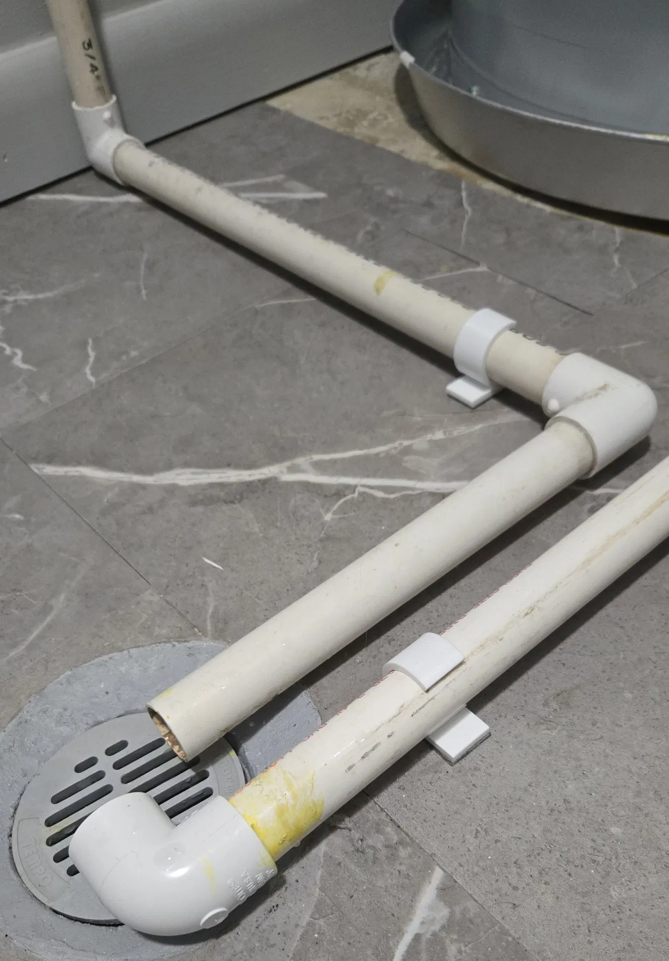 Đây là một cái kẹp ống kiểu “làm nhanh cho kịp” dành cho ống PVC cỡ 3/4". Mình cần một cái kẹp giữ ống PVC cố định nhưng vẫn cho phép tháo kẹp và dời ống khi cần. Mình cũng muốn dùng được với băng keo 2 mặt loại công nghiệp thay vì phải bắt vít lên nền gạch mới lát.