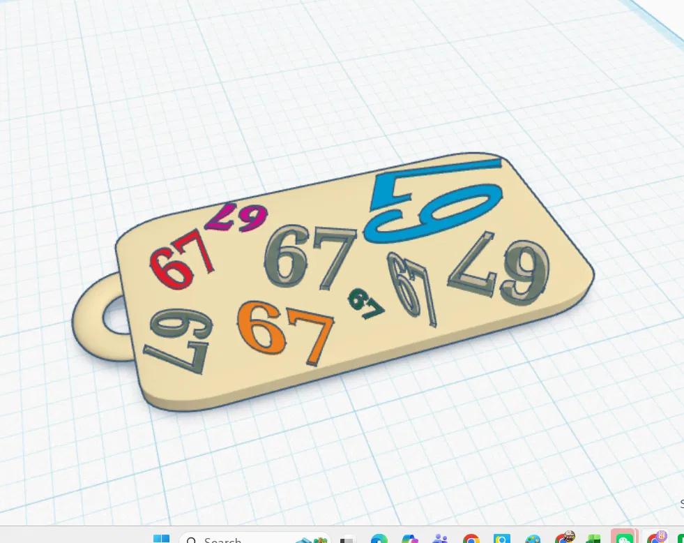 Mẫu móc khóa 67 nhỏ gọn, dễ in 3D, để bạn mang theo một “brainrot” đang thịnh hành bên mình. Phù hợp làm phụ kiện treo chìa khóa hoặc trang trí balo.
