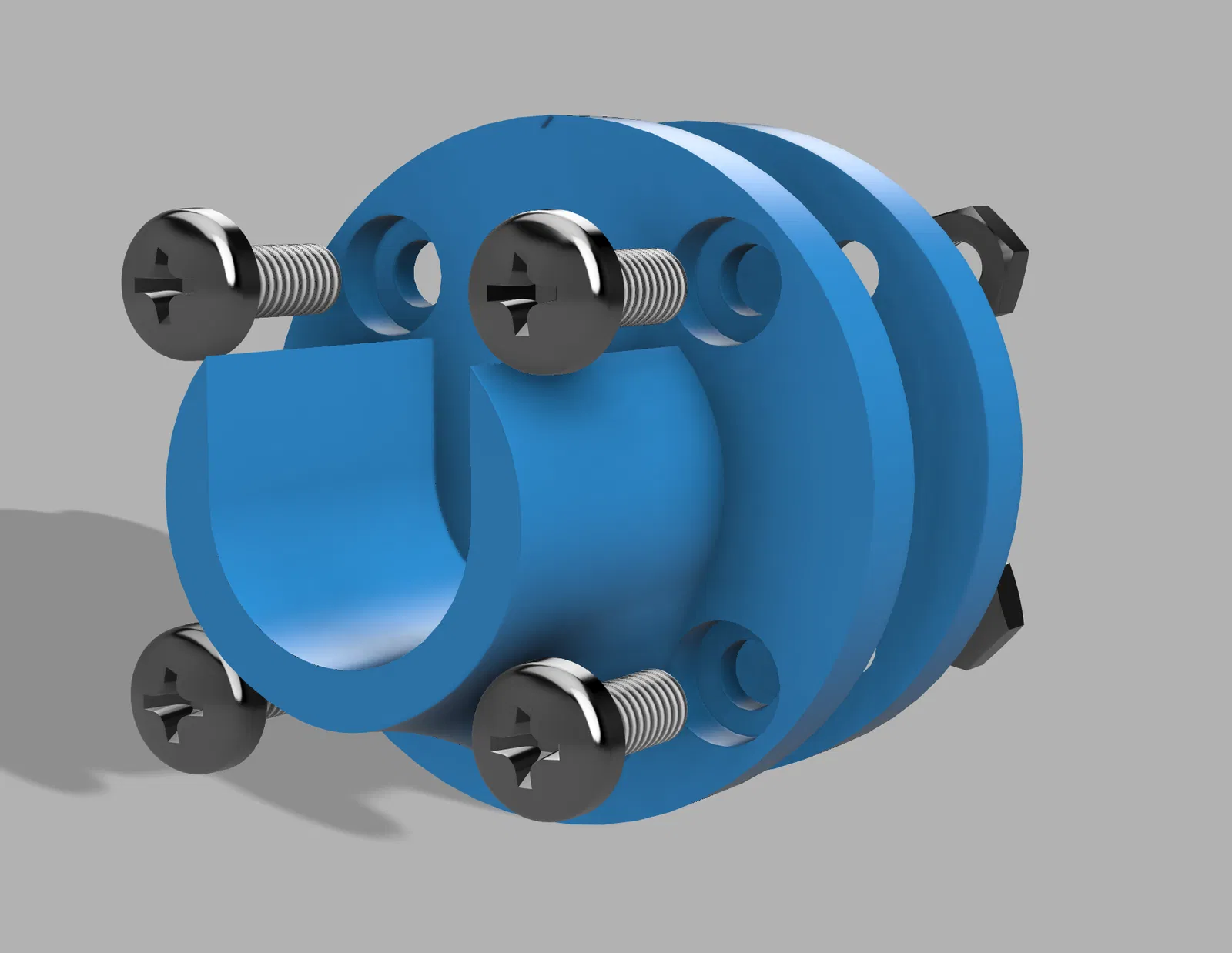 Thiết kế cho trục đường kính 16 mm và dùng ốc/vít M4 kèm đai ốc.