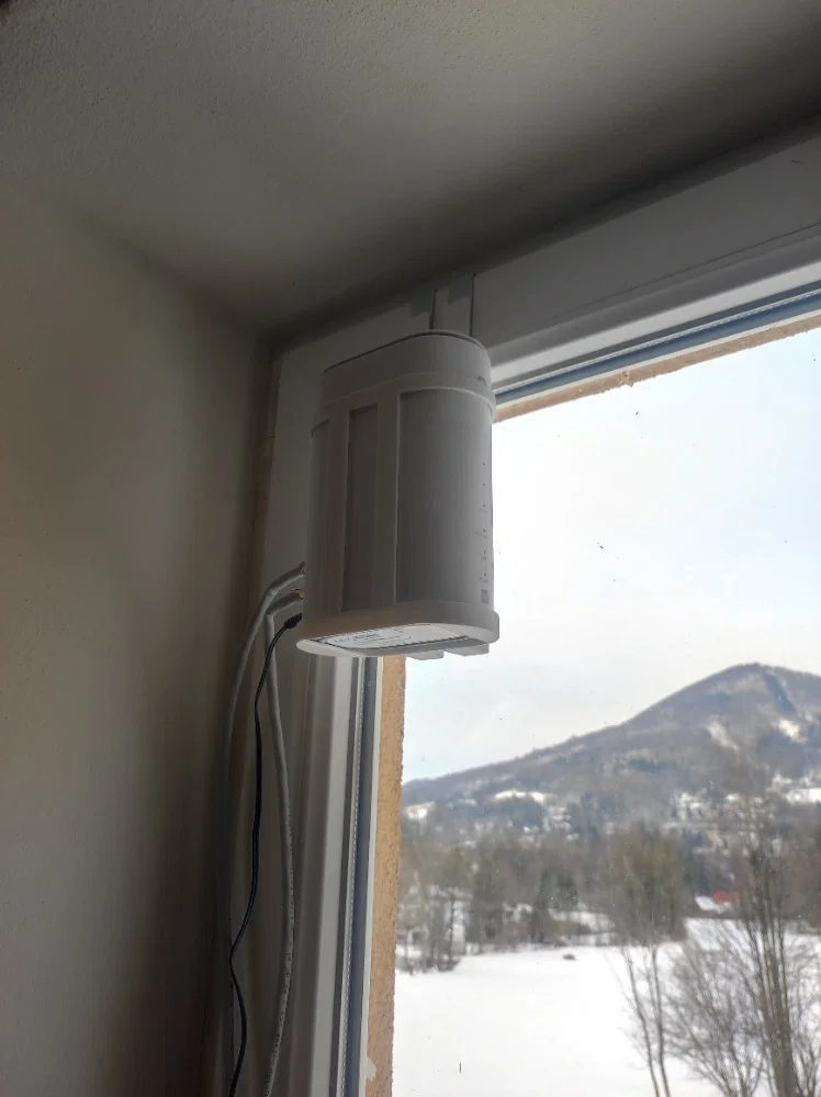 Đây là một cái holder cho hộp MC801A để treo lên mép trên của cửa sổ, giúp bắt tín hiệu Wifi tốt hơn. Sau khi in xong, mình bắt vít 2 cái móc bằng đồng vào phần trên; mấy cái móc này mình làm từ băng keo đồng (copper tape). Rồi mình treo cái holder lên mép cửa sổ.