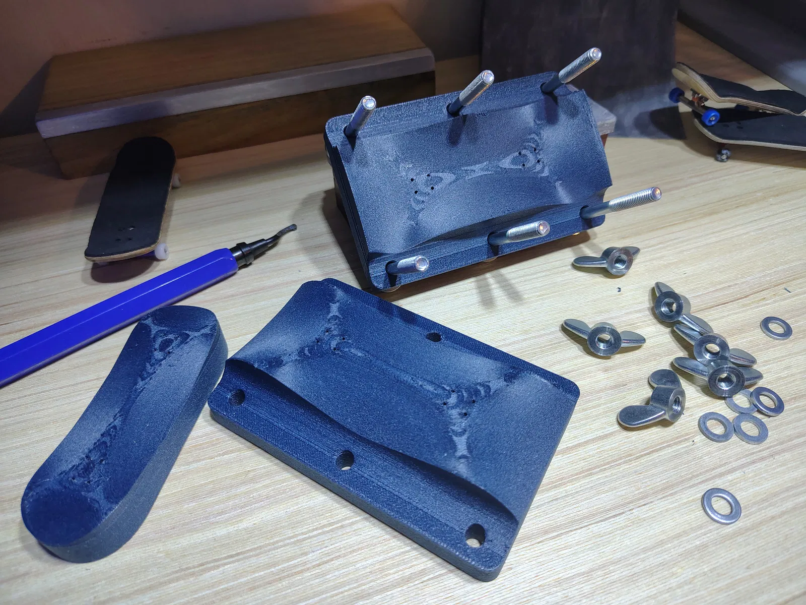 Lưu ý: đây KHÔNG phải mold. File STL này là Reference Deck tạo từ Fingerboard Mold Pro để test shape, kiểm tra calibration (lỗ truck chuẩn) trước khi làm khuôn Male/Female và Shaper Template. Có source code.