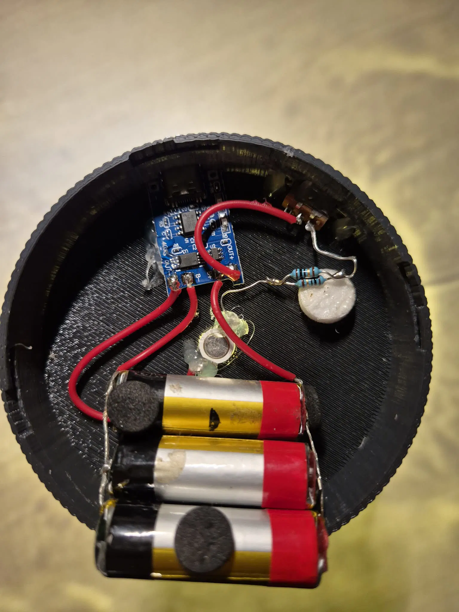 Mẫu “Nutella rechargeable LED Indoor plant lamp” gồm các part cho phần nắp. Dùng TP4056 USB-C, pin vape tái chế, LED 3W, công tắc và 2 điện trở 10Ω; lắp theo sơ đồ, dán keo nến, nắp bấm khớp.