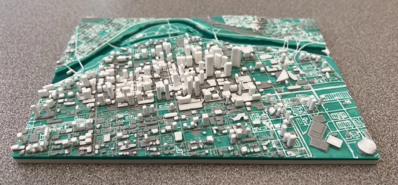 Mình dùng PrusaSlicer để paint theo từng layer hoặc theo từng khu của thành phố nhằm thêm màu. Mình cũng thêm một cái trụ nhỏ (cylinder) bên dưới phần đỉnh của Calgary Tower vì lần in đầu tiên tạo ra một phần rất mỏng để đỡ phần trên của tháp.