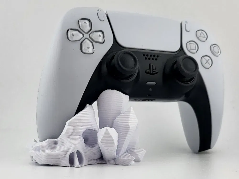 Kệ đỡ joystick/tay cầm PS5 PlayStation kiểu đầu lâu nhìn chất, in 3D nhanh, tiết kiệm vật liệu. Phù hợp để trưng bày gọn gàng trên bàn hoặc kệ, giúp tay cầm đứng vững và dễ lấy.