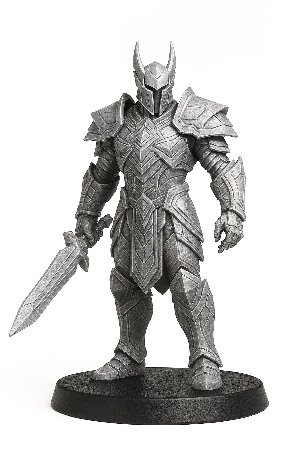 • Form: Một thân hình khổng lồ trong bộ giáp bạc, mũ giáp vô diện, và một lưỡi kiếm bằng tinh thể thuần khiết.