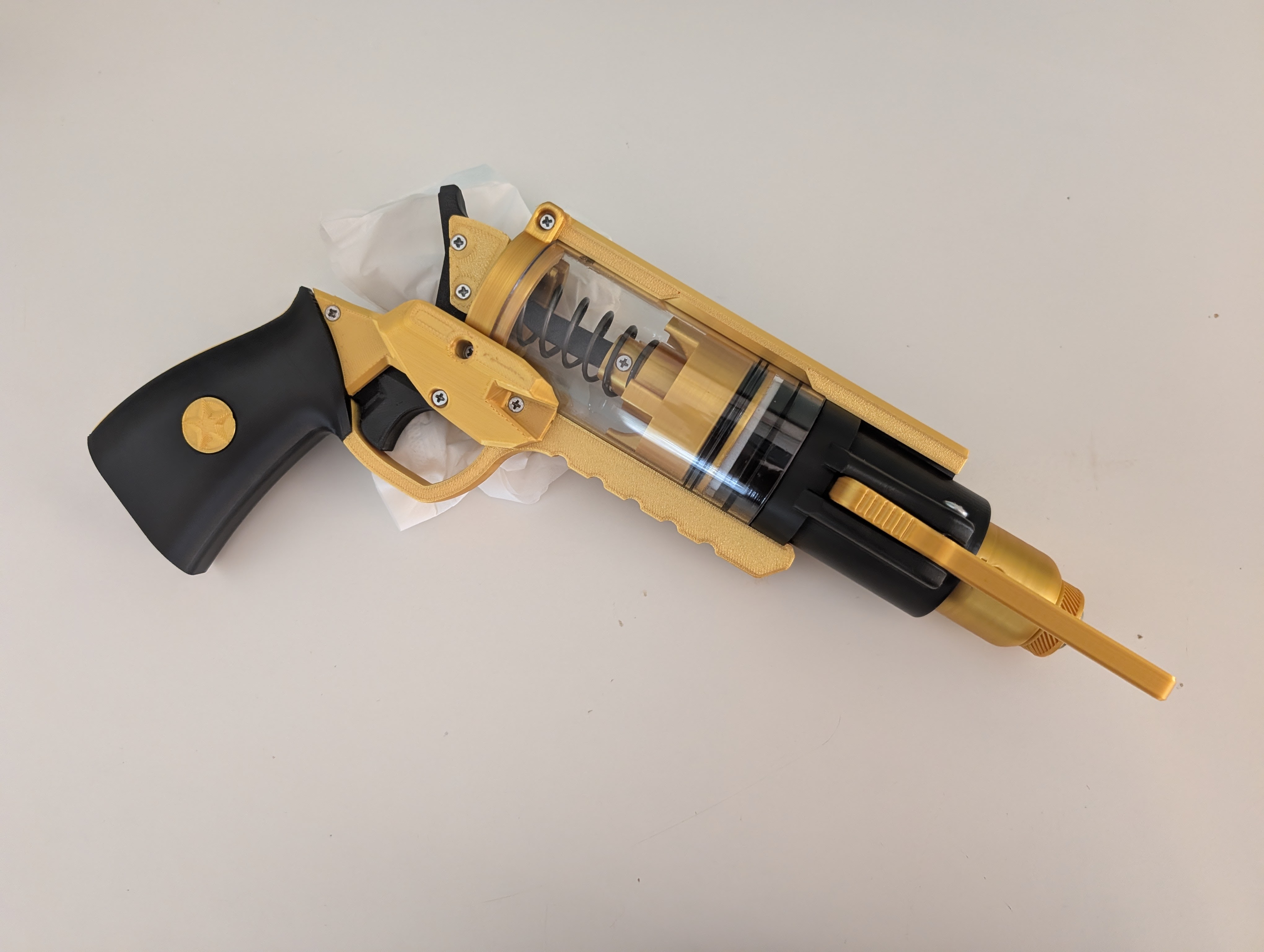 Cây blaster này được sinh ra từ “ngọn lửa” của sự hiểu lầm. Do mình được tặng một bộ YEHW hardware kit, rồi mình lục tung internet để kiếm cái món YEHW ngon nhất. Sau NHIỀU NĂM (phút) mình cũng tìm ra: THE GREYSON XL! Nó đúng y như mình mơ, nên mình quăng file thẳng qua con A1 mini để in. In xong hết rồi mới nhận ra một lỗi chí mạng trong model của Point No Point: họ cắt ngắn plunger tube đi 13mm! Ủa sao vậy?