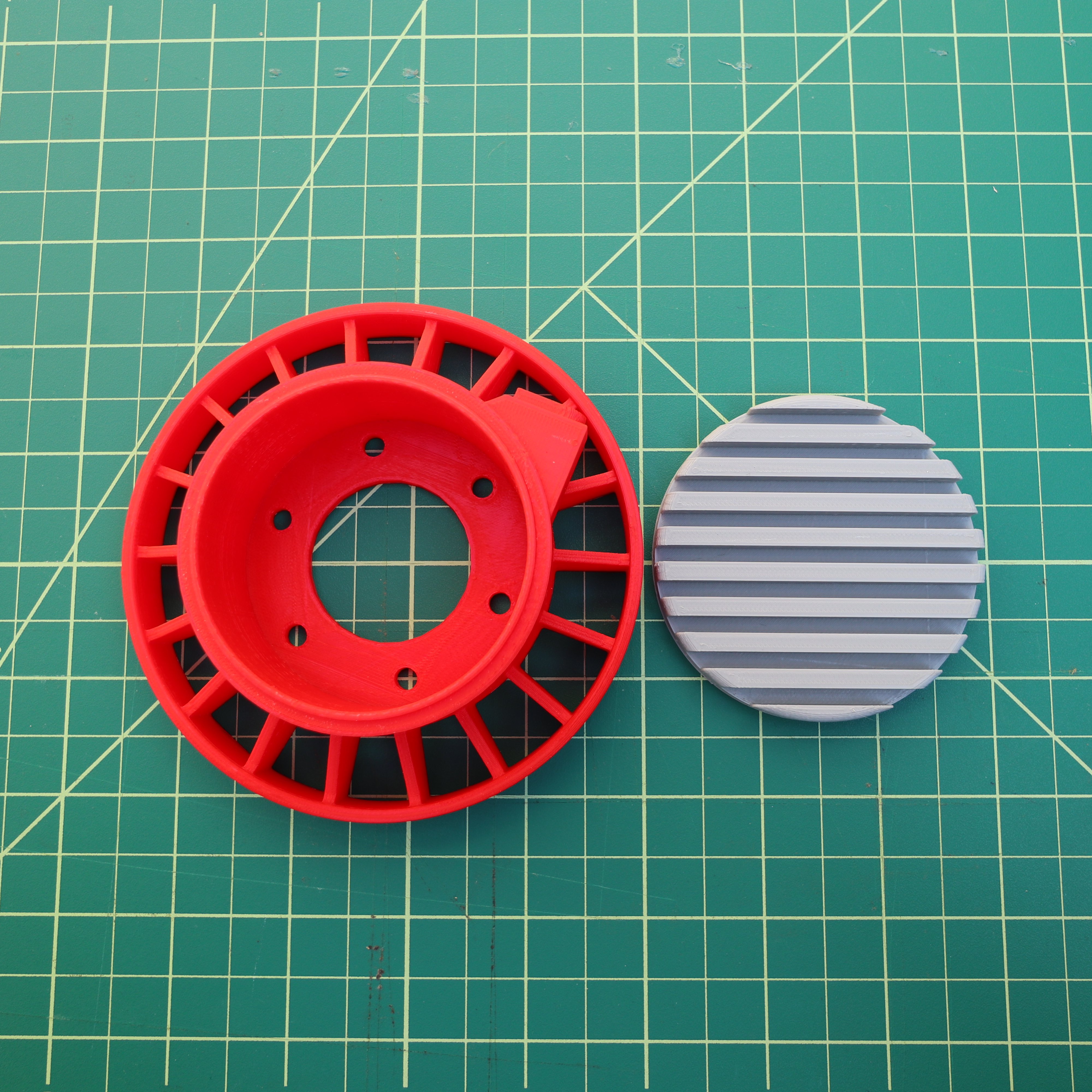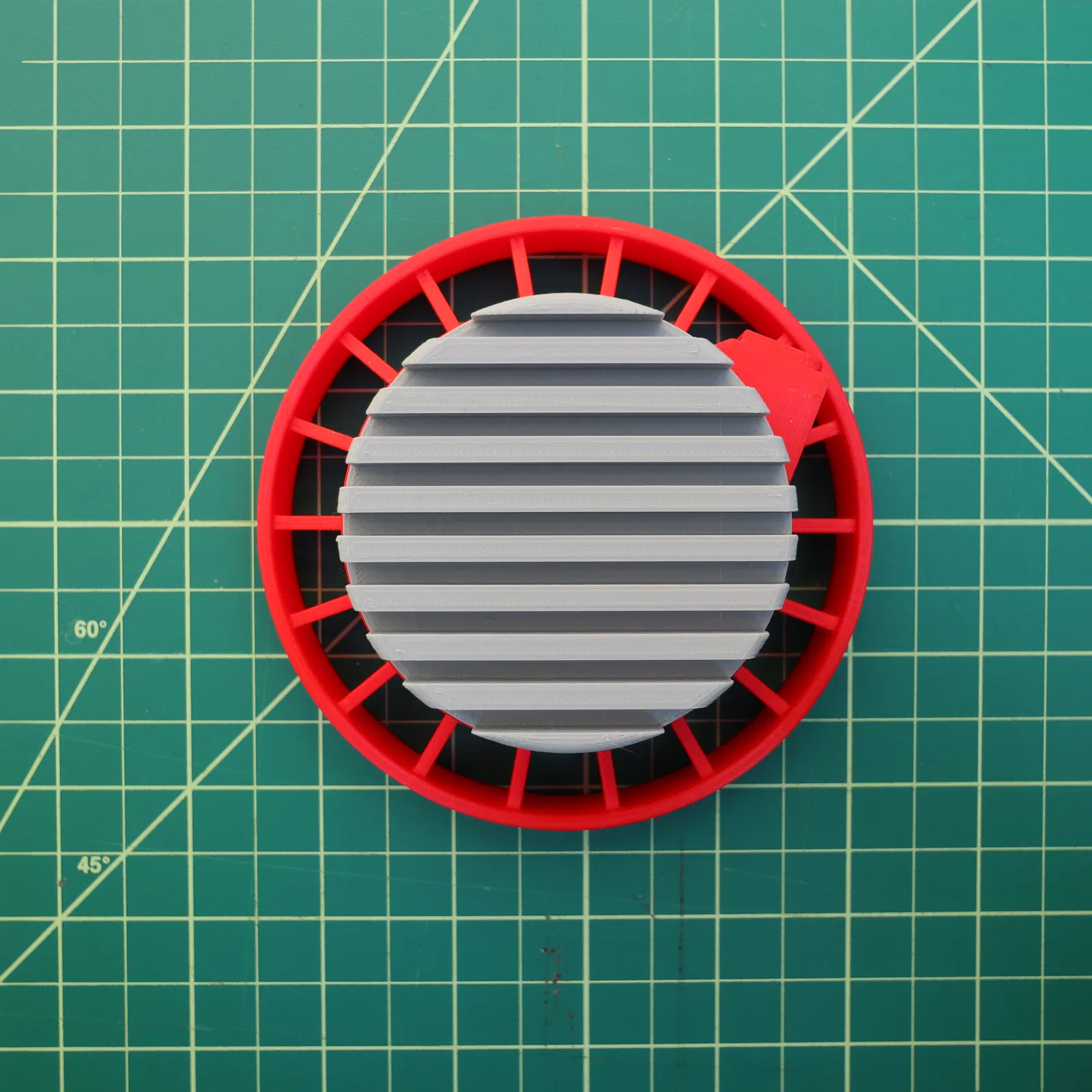 Lưới hông (side grill) đặc trưng cho đạo cụ Evil Dead Chainsaw. In base với support nhẹ ở khu vực cord-pull block và dùng infill tối thiểu 10% vì sẽ bắt vít khi lắp ráp.