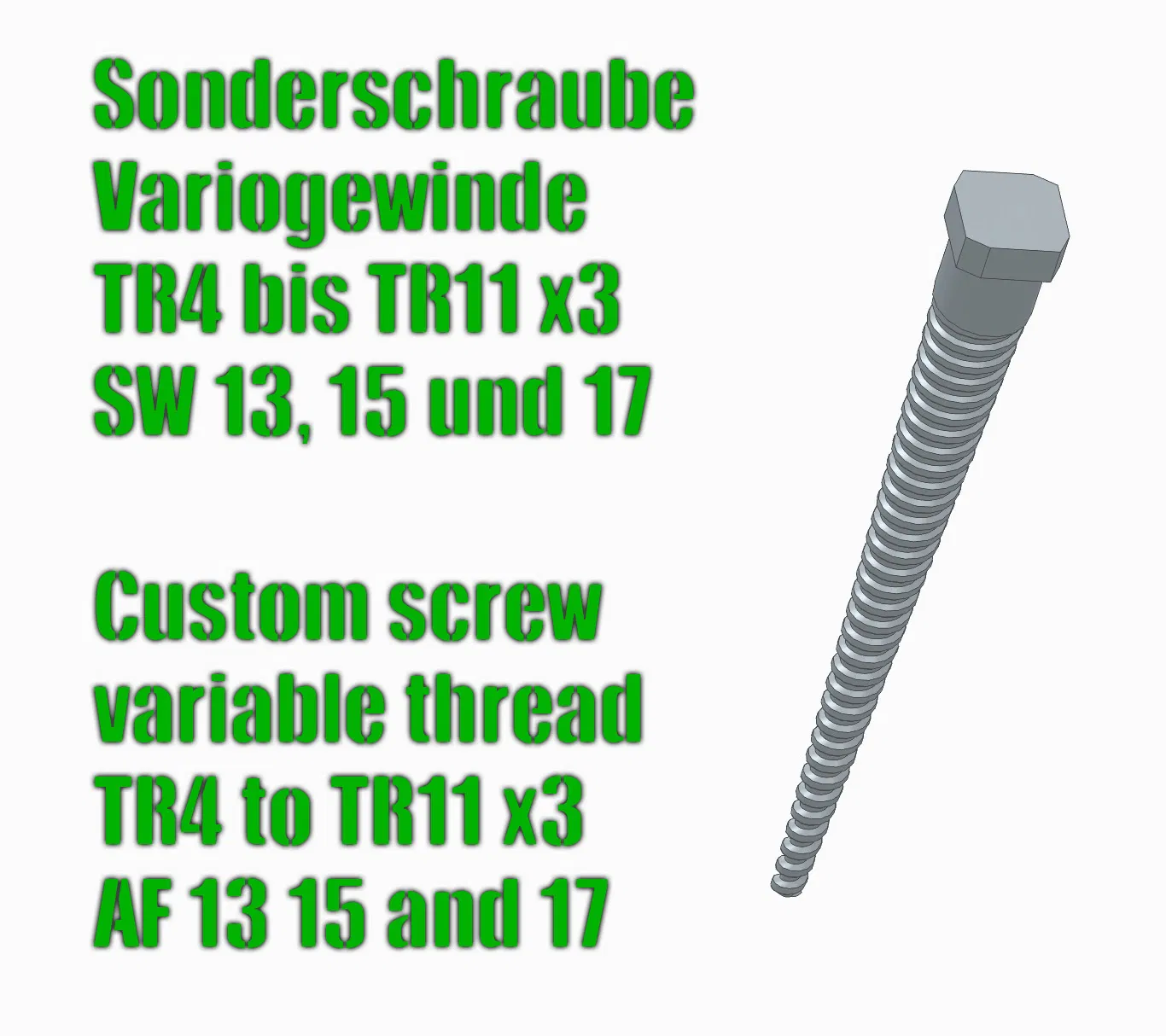 Custom screw variable thread TR4 to TR11 x3 AF 13, 15, 17