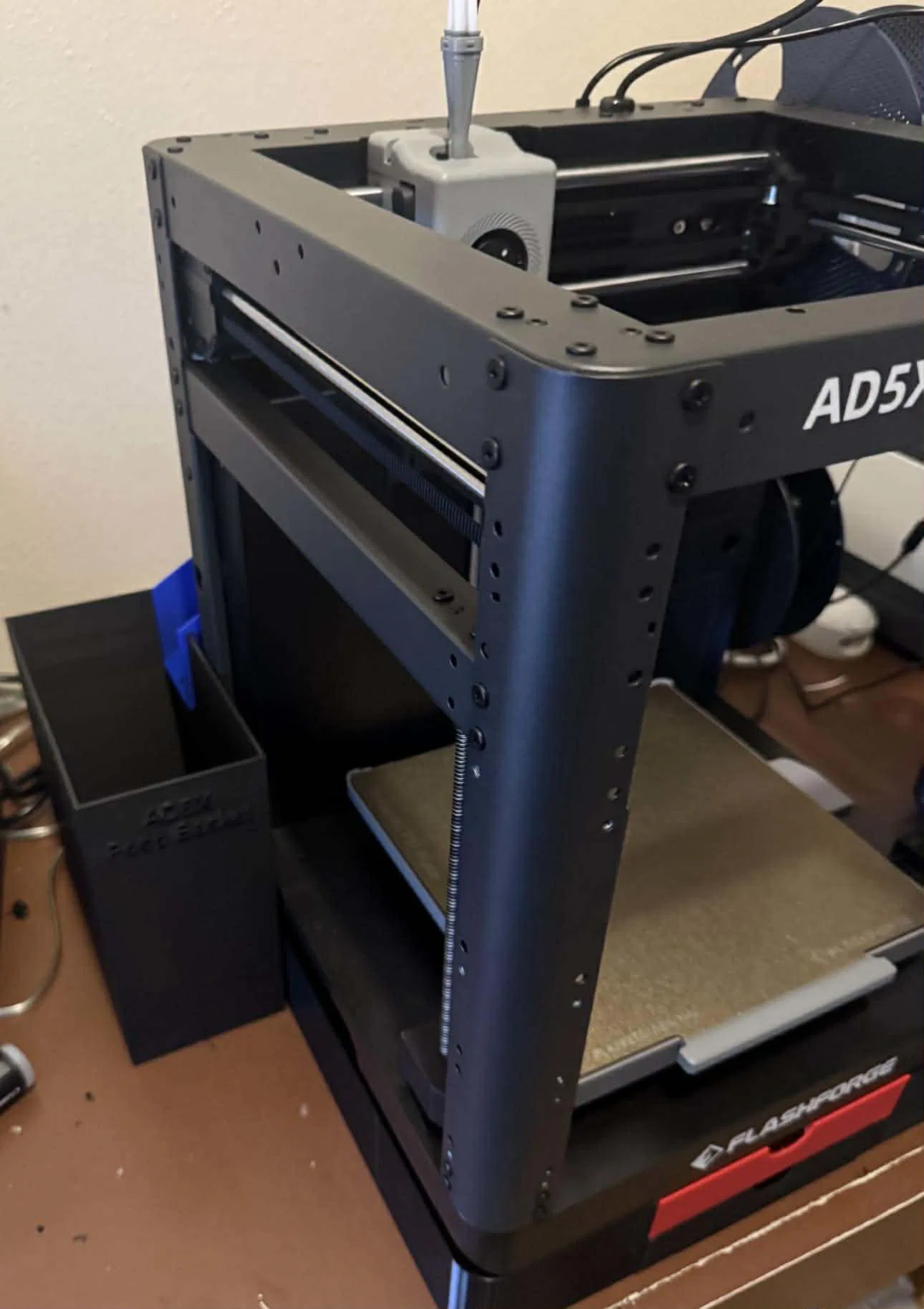 Giỏ chứa poop cho AD5X, thiết kế để dùng chung với poop chute của @MarkLitchfie_1252628. Tác giả làm mới vì giỏ cũ không hợp và hơi ọp ẹp sau khi lắp base. Dùng thực tế thấy ổn.