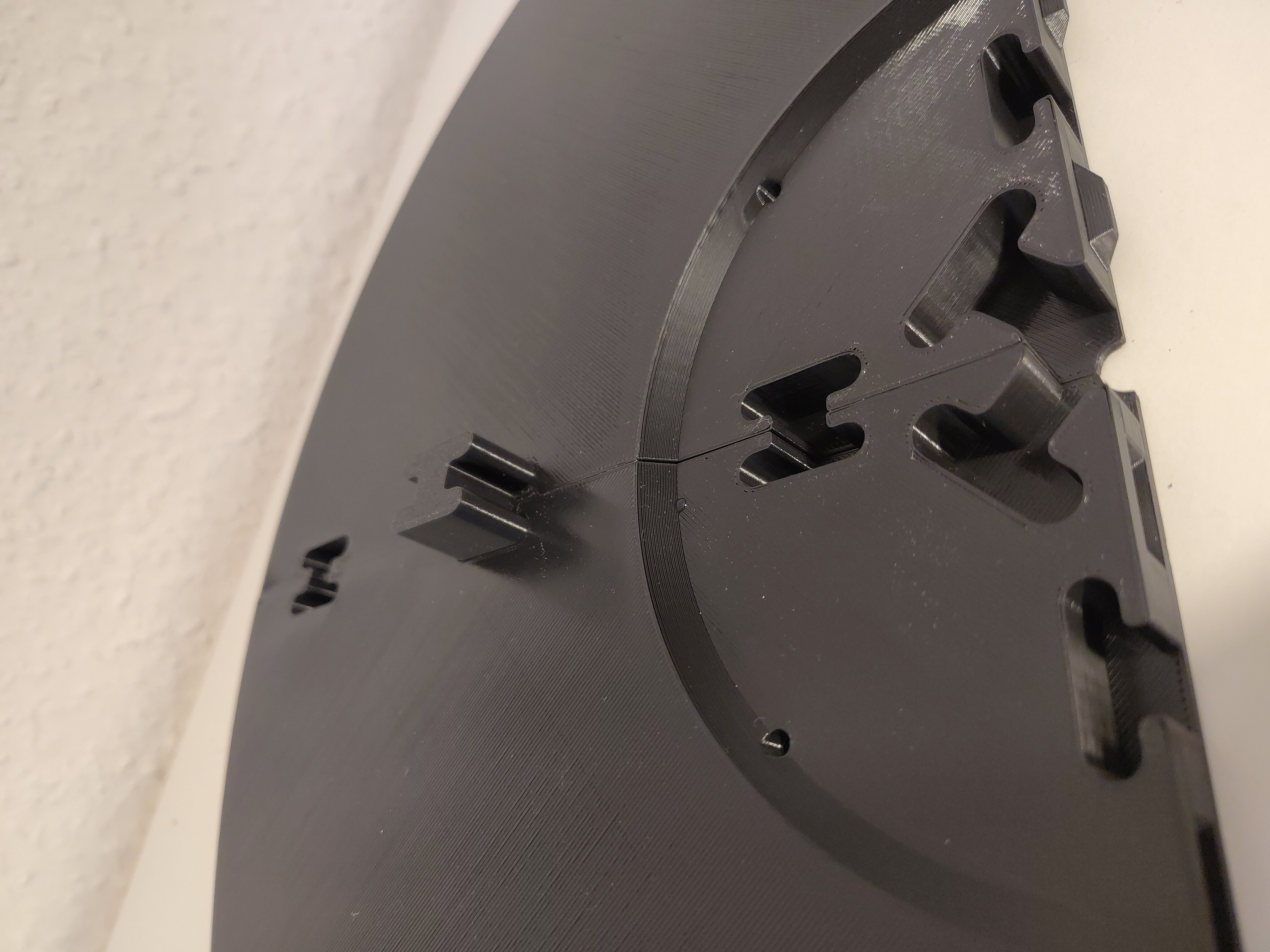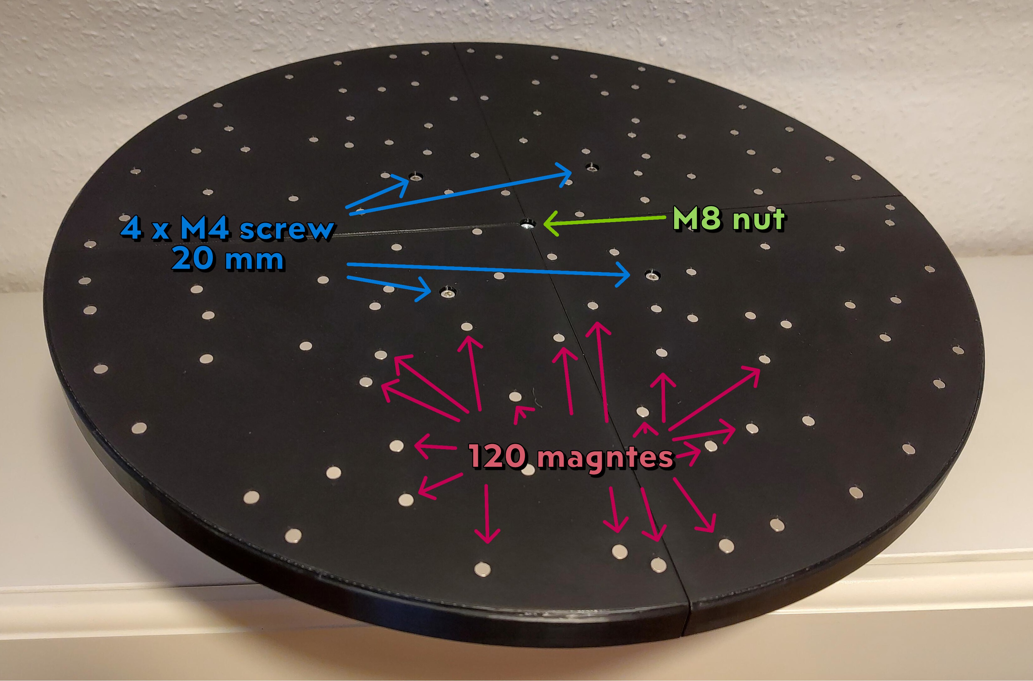 Trước tiên bạn nối hai phần bằng cách đóng các connector từ mặt dưới để tạo thành hai nửa của bàn xoay quét. Sau đó bạn ghép hai nửa lại để thành bàn xoay hoàn chỉnh.