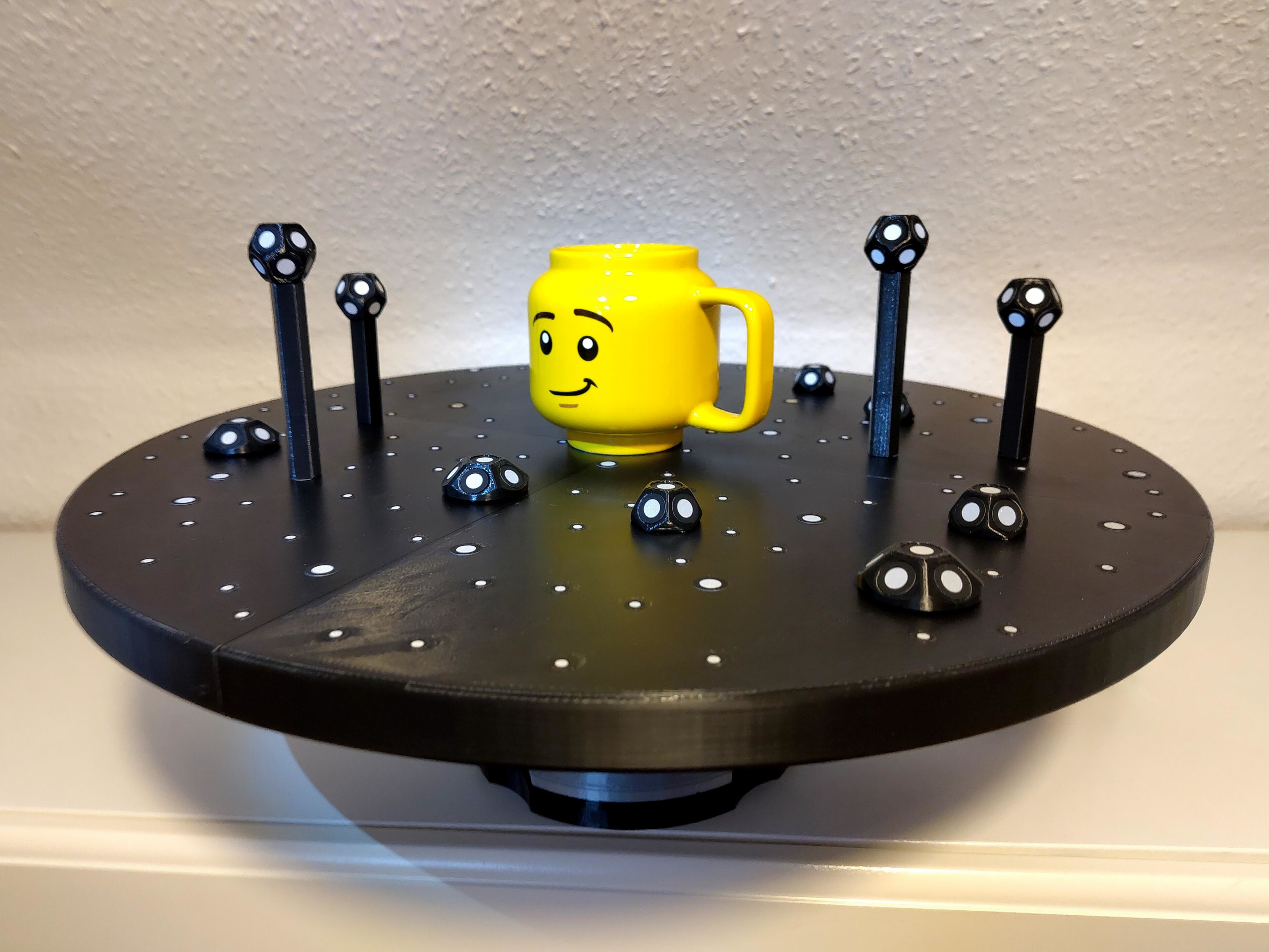 Bàn xoay quét 3D có 120 nam châm tròn, nên các vật có tính từ sẽ không bị trượt khi mặt bàn xoay. Ngoài ra, bạn có thể tùy chỉnh thêm các scanning marker dạng nam châm.