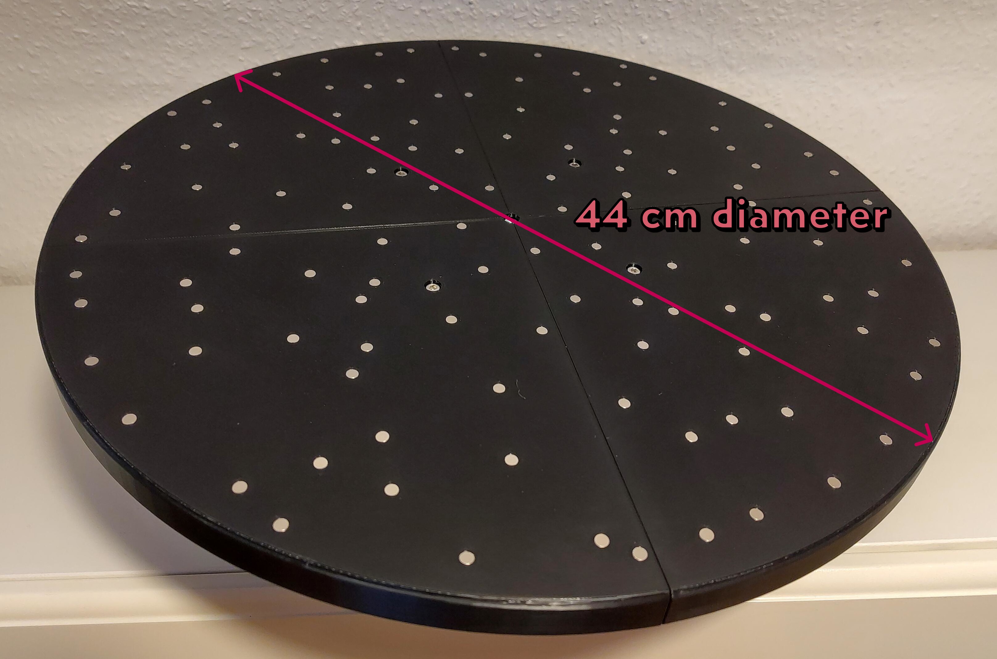 Bàn xoay quét 3D đường kính 44 cm dành cho vật lớn, dùng với Highly Adjustable Ball Vise System để nghiêng đa góc và xoay bằng motor. Tích hợp 120 nam châm chống trượt, hỗ trợ nhiều size và có đai ốc M8 ở tâm.