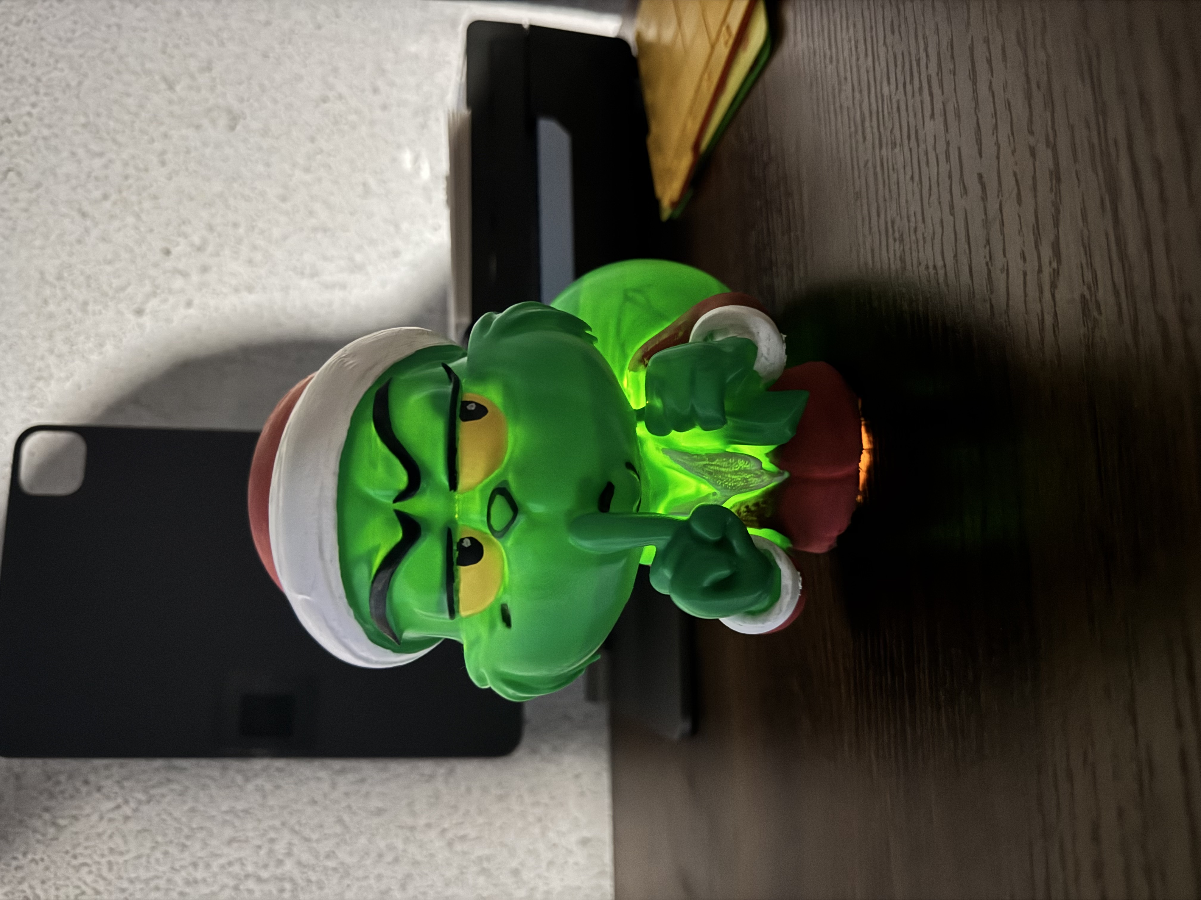 Tượng bán thân Grinch phong cách Santa Claus, ruột rỗng và có lỗ dưới đáy để gắn đèn candle LED. Có thể in multicolor hoặc in một màu rồi tự sơn, rất hợp trang trí Noel.