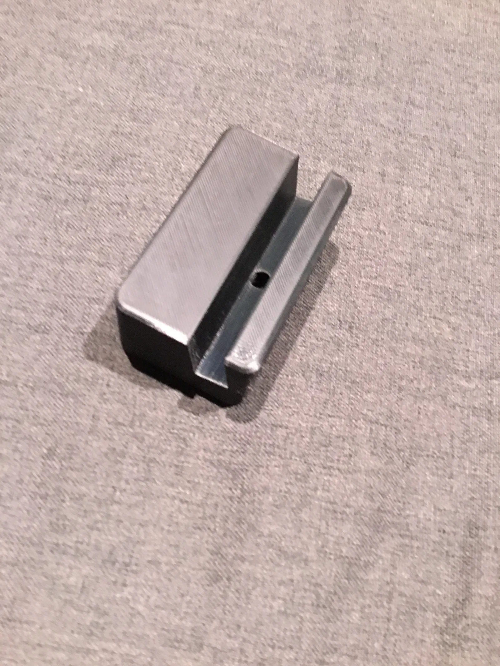 Đây là một cái đế đỡ điện thoại đơn giản, được thiết kế riêng cho iPhone 15 Pro. Phần đế có một lỗ để người dùng luồn dây: một đầu buộc vào ốp lưng điện thoại, đầu còn lại gắn với cái chuông hoặc một thiết bị nào đó phát ra tiếng ồn.